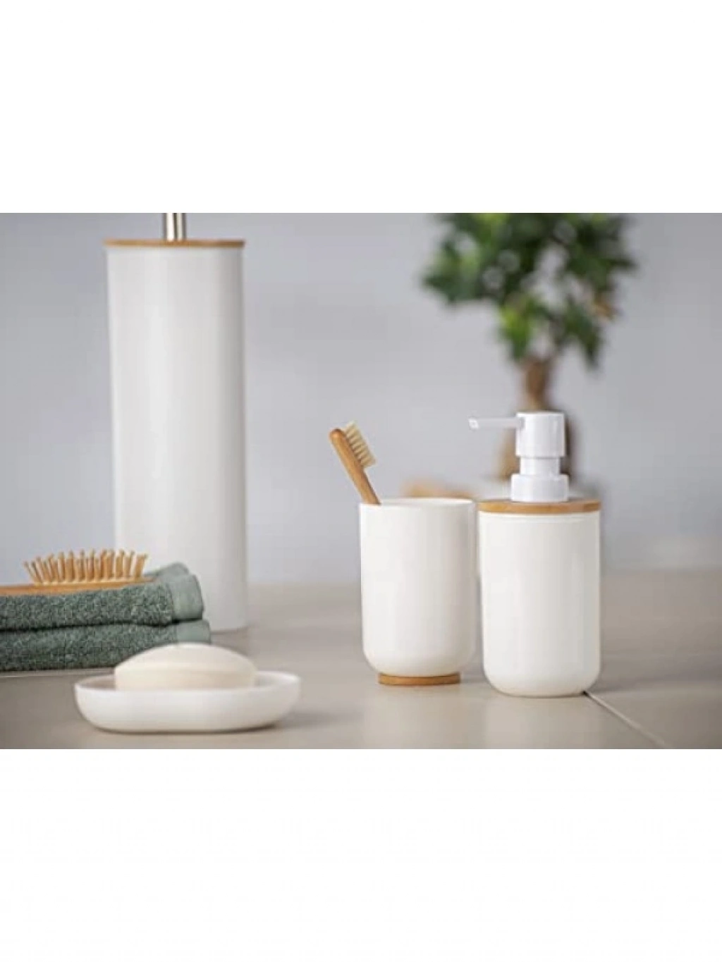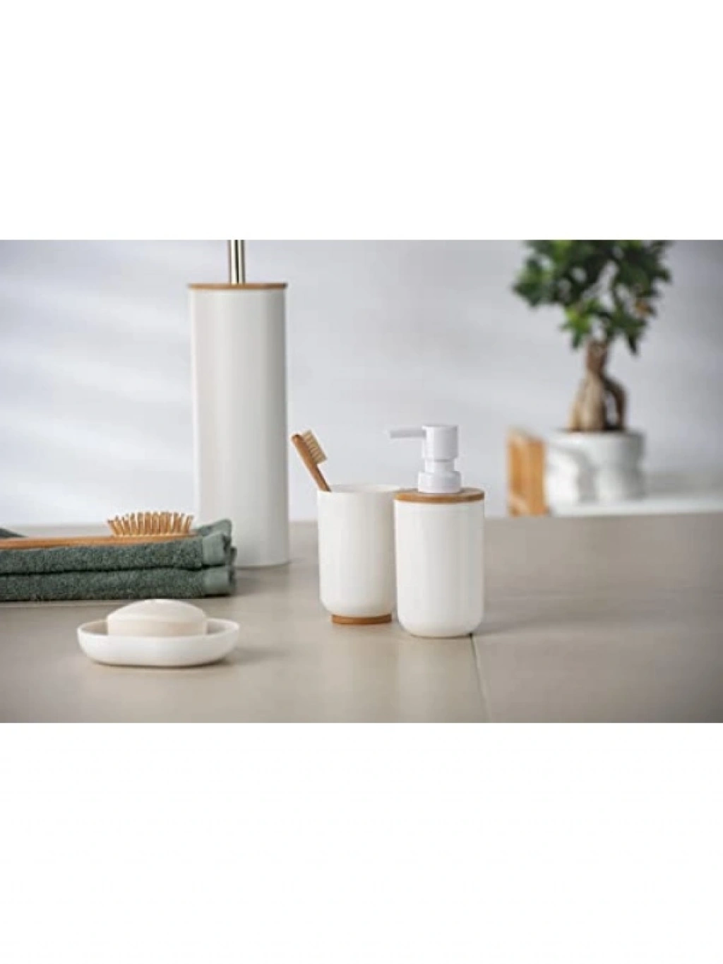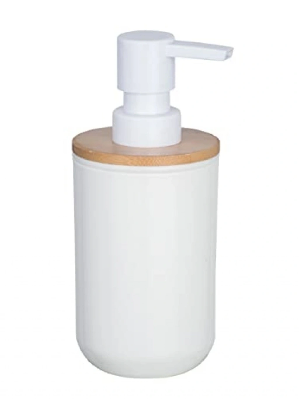 Modern tasarımıyla dikkat çeken bu sıvı sabunluk, doğal bambu desenli beyaz plastikten üretilmiştir. 7 x 16,5 x 8 cm ölçülerindeki bu ürün, yaklaşık 330 ml sıvı alabilme kapasitesine sahiptir. Pompa mekanizması sayesinde istenen miktarda sabun, losyon veya deterjanı kolayca dağıtır.