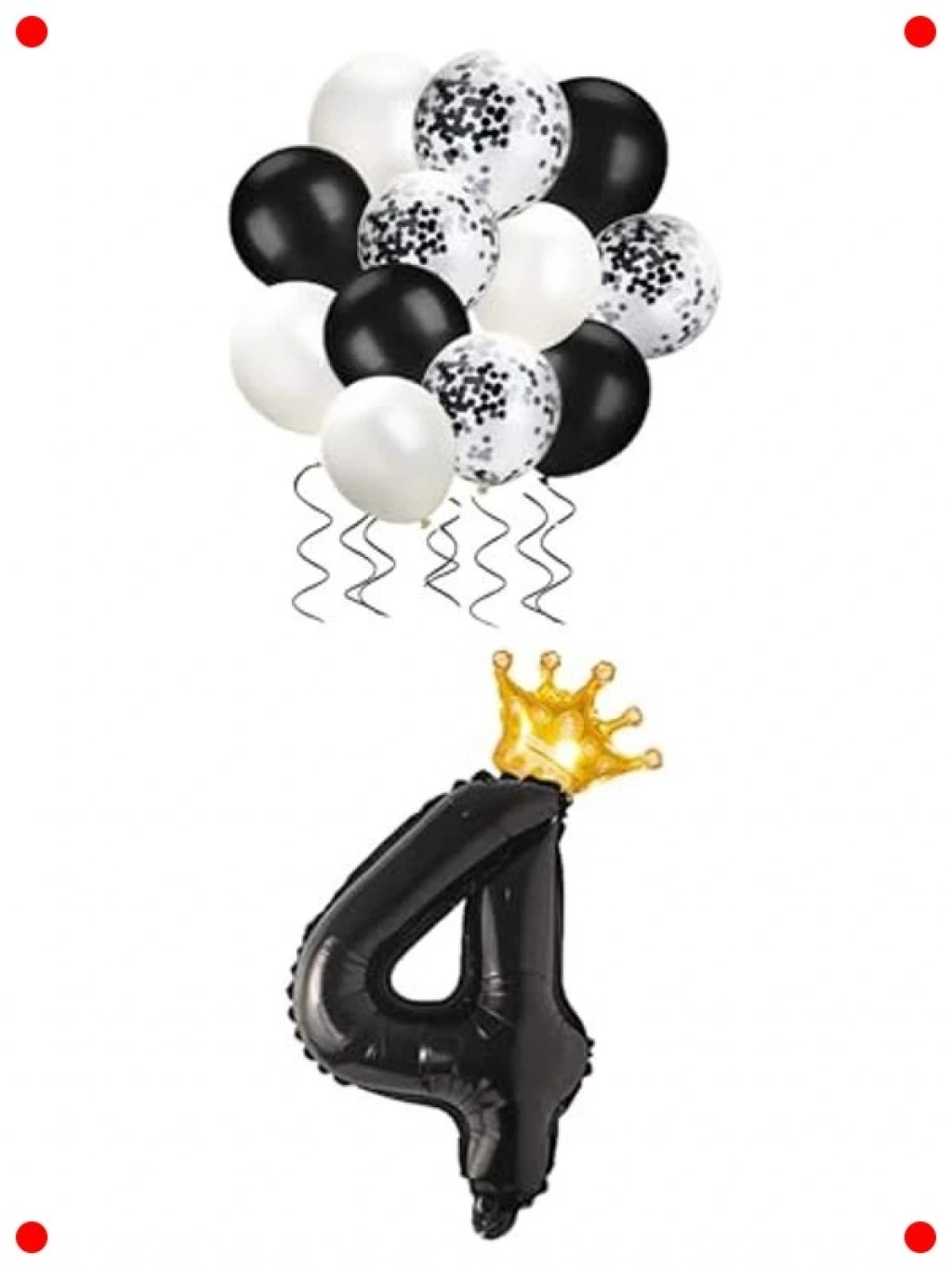 Özel bir günü kutlamak için zarif ve göz alıcı bir dekorasyon mu arıyorsunuz? Bu siyah folyo 4 rakam balon seti, doğum günleri, yıl dönümleri veya özel etkinlikler için mükemmel bir seçenektir. Set, büyük boy siyah '4' rakam folyo balonun yanı sıra, kutlamanın ihtişamını artıran şık bir kral tacı ve parlak konfetili balonları içerir. Misafirlerinizi etkileyecek ve unutulmaz anılar yaratmanıza yardımcı olacak bu set ile partinize sofistike bir dokunuş katın. Kolay şişirilebilir yapısıyla hızlıca kullanıma hazır hale gelir.