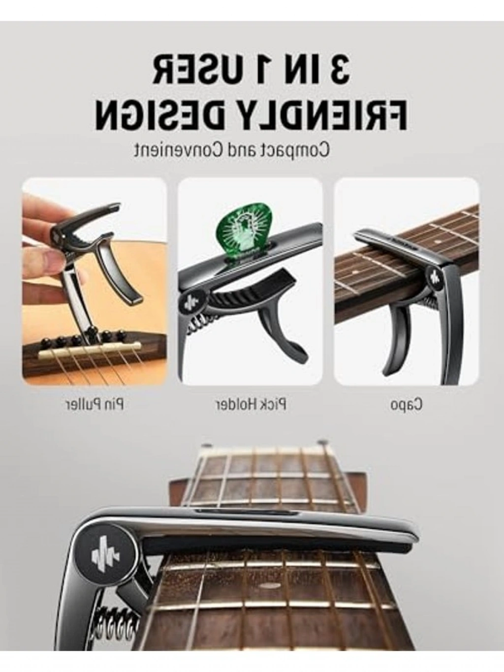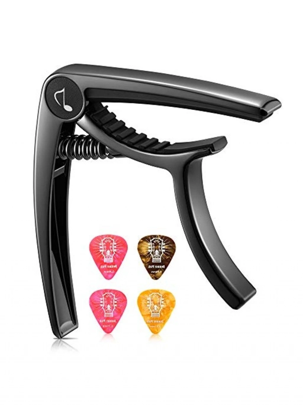 Siyah gitar capo, akustik ve elektro gitarlar için mükemmel uyum sağlamaktadır. Yüksek kaliteli çinko alaşımından üretildiği için uzun ömürlüdür. Kolay hareket edebilmesi, elektrik ve akustik gitarlar, ukulele, banjo gibi çeşitli gitar türleri ile uyumlu olmasını sağlar. Silikon pedler sayesinde, cihazınıza herhangi bir zarar vermeden müzik yapmanızı sağlar.