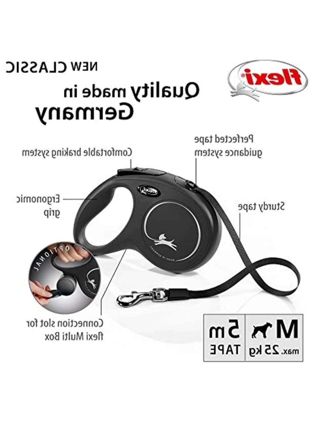 Siyah renkli M beden şerit tasma, 5 metre uzunluğuyla evcil hayvanlarınız için güvenli ve rahat bir kullanım sunar. Otomatik kayış sistemi, birçok uzman ve veteriner tarafından önerilen bu ürün, yürüyüşlerinizde konforu artırmak için idealdir.