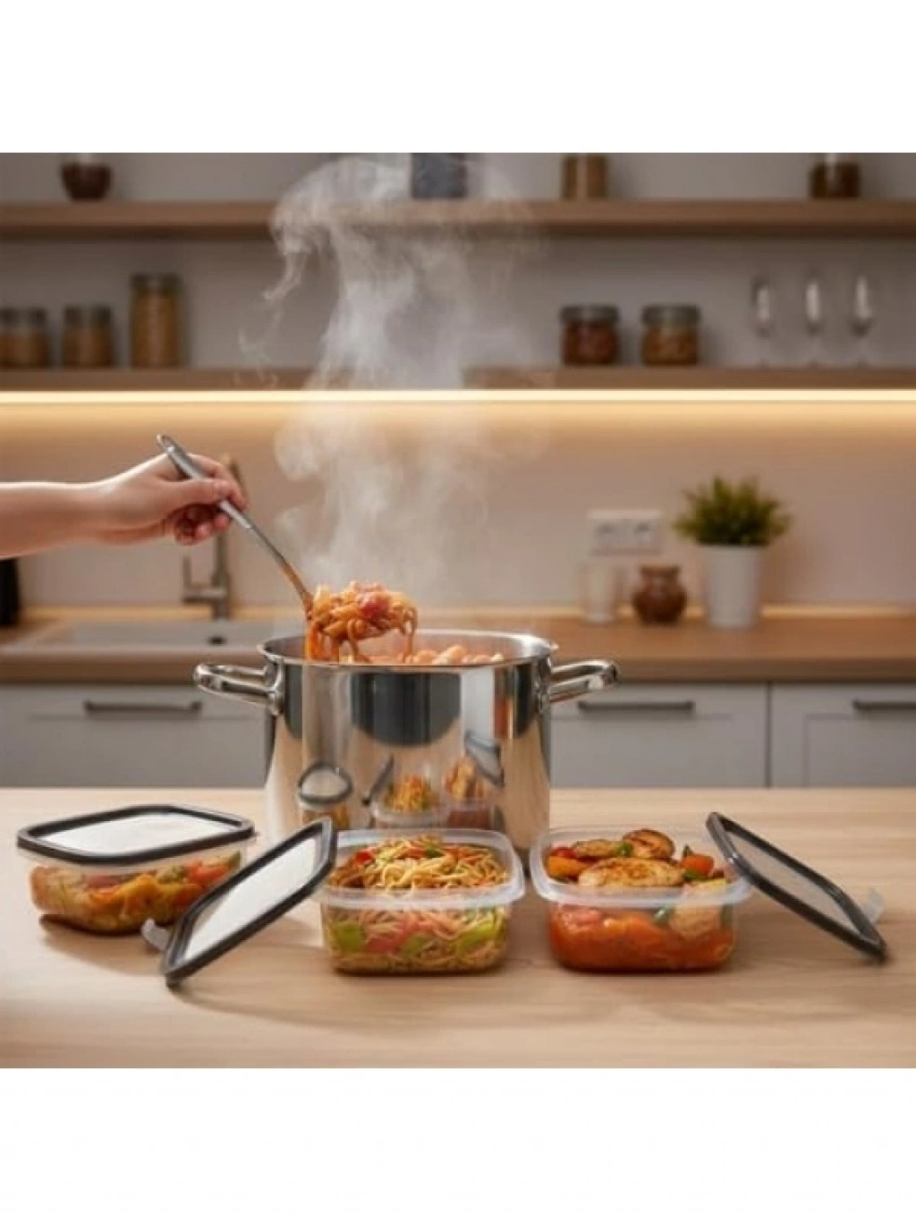 Farklı boyutlardaki bu üçlü saklama kabı seti, 300 ml, 500 ml ve 850 ml kapasiteleriyle yiyeceklerinizi düzenli bir şekilde saklamanızı sağlar. Sızdırmaz kapakları sayesinde yiyeceklerinizin tazeliğini korur ve dökülme riskini ortadan kaldırır. BPA'sız sağlıklı plastikten üretilmiş olup, buzdolabında ve piknikte kullanım için idealdir. Kolay temizlenebilir, dayanıklı ve uzun ömürlü bir ürün grubudur.