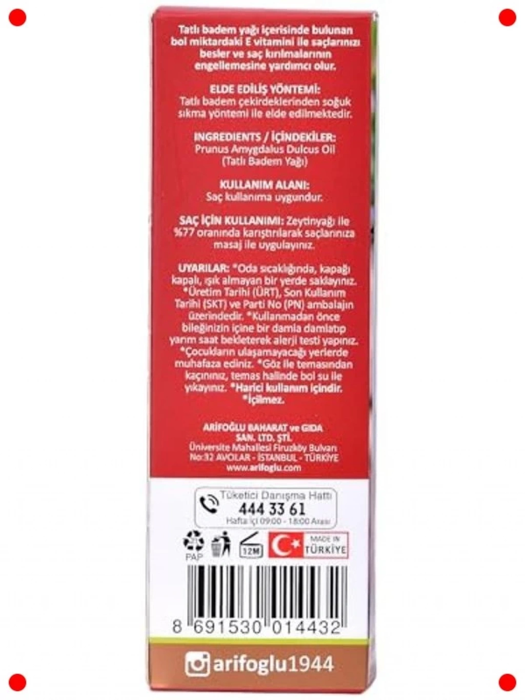 Doğanın mucizevi armağanlarından tatlı badem yağı, soğuk sıkım yöntemiyle elde edilerek en saf haliyle size sunulur. Cildinizi derinlemesine nemlendirirken yumuşatır ve elastikiyetini artırır. Saçlarınıza uygulandığında, saç tellerini besler, parlaklık kazandırır ve kırılmalara karşı koruma sağlar. Makyaj temizleyici olarak da kullanılabilen bu çok yönlü yağ, hassas ciltler için de uygundur. E vitamini açısından zengin içeriğiyle cildin yenilenmesine destek olur. 50 ml'lik pratik boyutuyla çantanızda veya banyo dolabınızda kolayca yer bulur.
