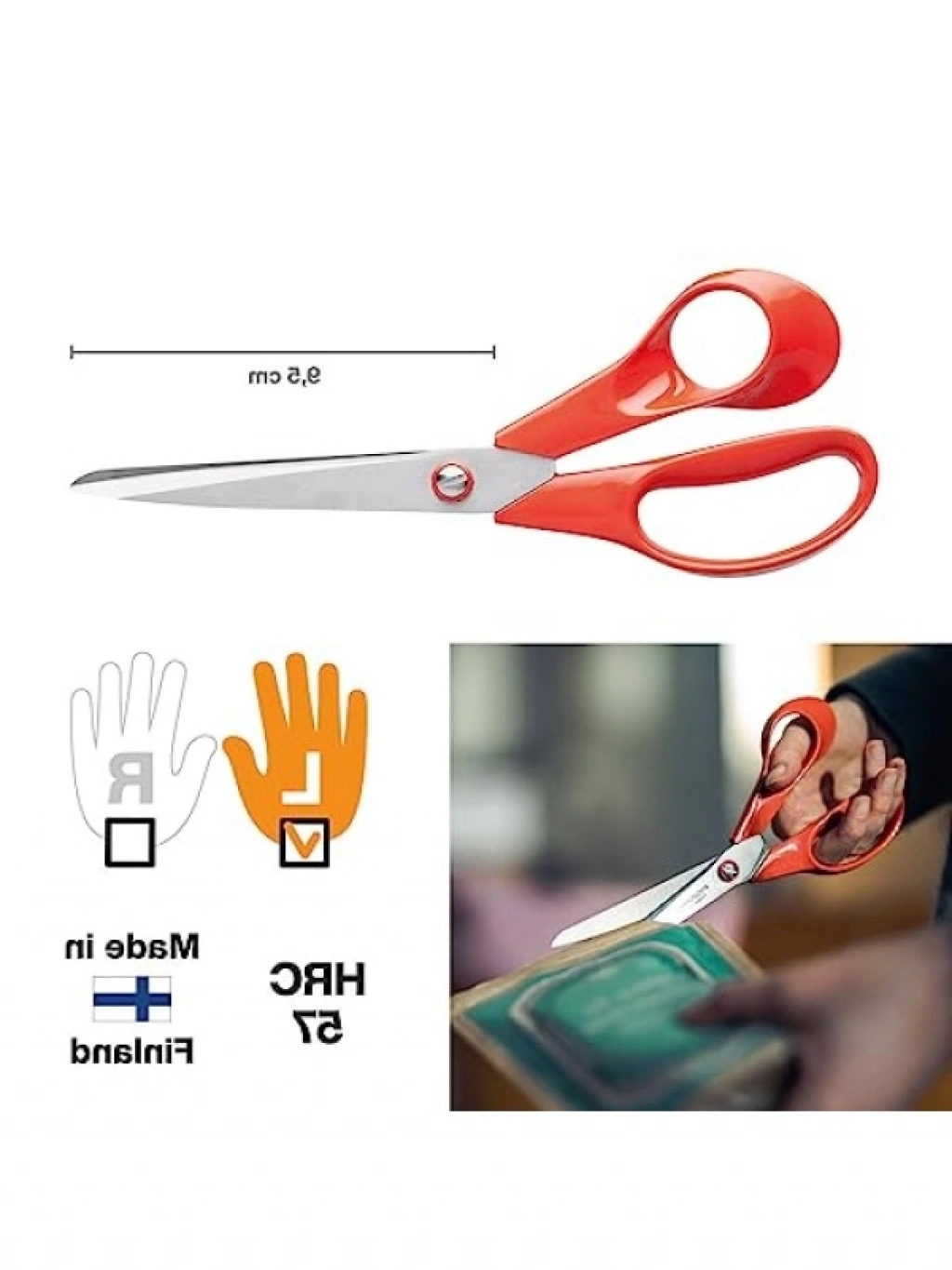 Bu evrensel makas, solak kullanıcılar için özel olarak tasarlanmıştır. Toplam uzunluğu 21 cm olan makas, kağıt, kumaş ve lamine malzemeleri kesmek için idealdir. Paslanmaz çelik bıçakları, uzun ömürlü kesim performansı sunarken, ergonomik plastik sapları konforlu bir kullanım sağlar. Ayarlanabilir bıçak gerginliği ile farklı kalınlıklarda zahmetsiz kesim yapabilirsiniz.