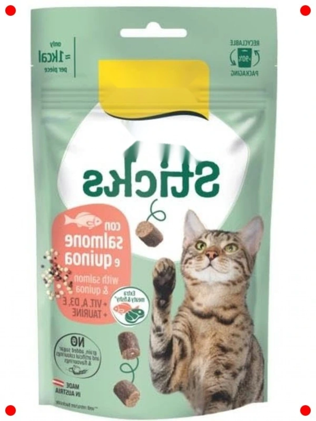 Kedinizin bayılacağı, somon ve kinoa içeren bu lezzetli ödül çubukları, eğitim sırasında veya sadece sevginizi göstermek için mükemmel bir seçenektir. Yüksek kaliteli içeriklerle hazırlanan bu atıştırmalıklar, kedinizin sindirim sistemine dosttur ve ona enerji verir. Her bir çubuk, kedinizin kolayca çiğneyebileceği ve tadını çıkarabileceği mini boyutlardadır. Pratik ambalajı sayesinde tazeliğini korur ve kolayca saklanabilir. Kedinizin sağlıklı bir diyetle birlikte keyifli anlar yaşamasını sağlar. Tüy sağlığını destekleyen omega-3 yağ asitleri açısından zengindir. Her ısırıkta lezzet ve sağlık bir arada!
