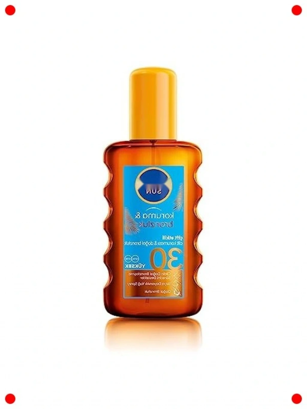 Yüksek SPF30 koruması ile cildinizi güneşin zararlı ışınlarına karşı etkili bir şekilde korurken, doğal bronzluk elde etizi sağlayan bu güneş yağı spreyi 200 ml'lik pratik boyutuyla yanınızdan ayırmayacaksınız. Özel -melanin özleri sayesinde cildinizin doğal bronzlaşma sürecini destekler ve daha hjen bir renk sağlar. Suya dayanıklı formülü, yüzme veya terleme sonrası bile etkili koruma sunmaya devam eder. Cildi nemlendirir, kuruluk hissini engeller ve parlak bir görünüm kazandırır. Kolay uygulanan sprey formatı sayesinde hızla elir ve ciltte yağlı bir his bırakmaz. Yaz aylarında hem korunmak hem de sağlıklı bir bronzluk kazanmak isteyenler için idealdir.