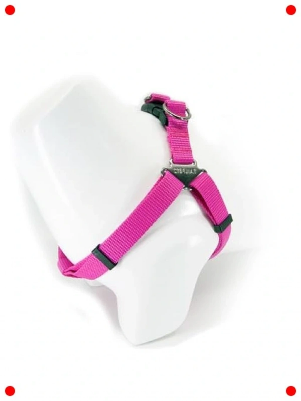 Köpeğinizin üzerine kolayca giydirebileceğiniz bu "Step-In" tasmalı göğüs koşumu, konfor ve güvenliği bir arada sunar. Köpeğinizin başından geçirilmeye gerek kalmadan, patilerini geçirerek saniyeler içinde takılabilir. Ayarlanabilir askıları sayesinde köpeğinizin vücuduna mükemmel uyum sağlar, böylece sürtünmeyi ve rahatsızlığı önler. Sağlam ve dayanıklı malzemeden üretilmiştir, günlük yürüyüşler ve eğitimler için idealdir. Göğüs bölgesine uyguladığı eşit basınç sayesinde tasmayı çekerken boğulma hissini ortadan kaldırır. Fuşya rengi ve küçük beden seçeneğiyle hem şık hem de fonksiyonel bir tercihtir.