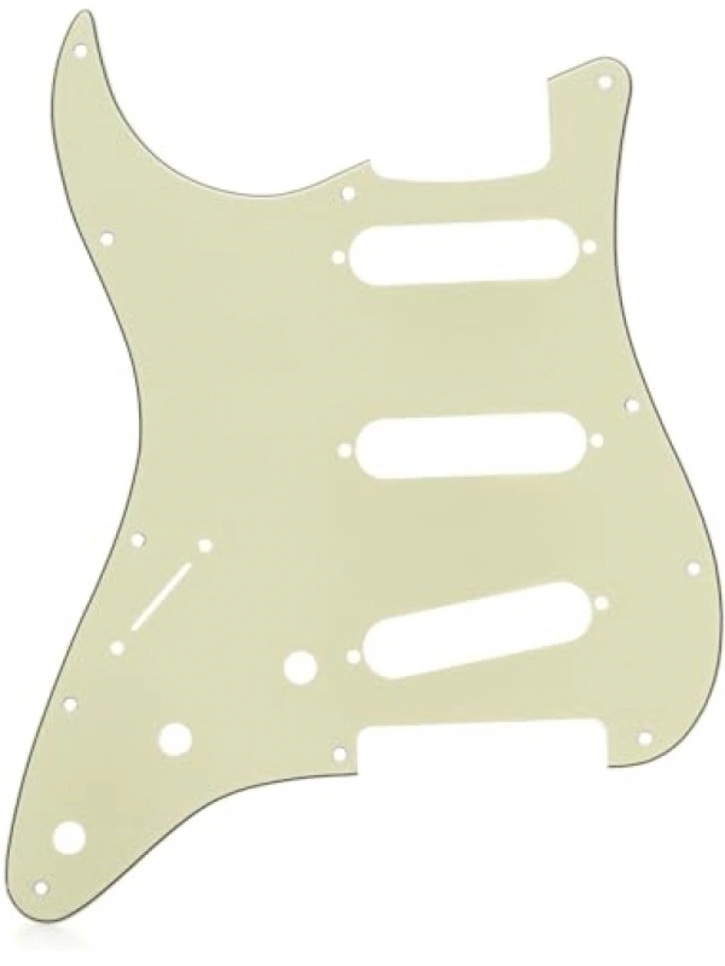 Bu 11 delikli nane yeşili Stratocaster pickguard, 3 adet tek bobinli pikap için uygundur. 3 katlı yapısı sayesinde hem estetik bir görünüm sunar hem de gitarınızı korur. Nane yeşili rengi ile gitarınıza farklı bir hava katar. Kolay montaj imkanı ile kullanıcı dostu bir tasarıma sahiptir. Gitarınızın stilini ve görünümünü geliştirmek için mükemmel bir aksesuardır. Hem profesyonel hem de amatör müzisyenler için ideal bir seçimdir.