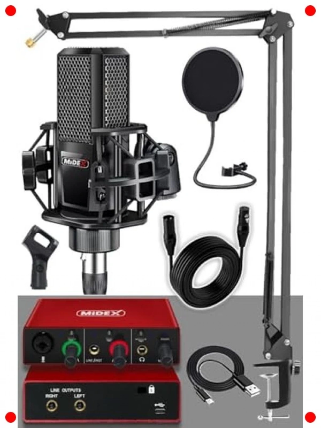 Müzik, podcast veya seslendirme projeleriniz için ideal olan bu eksiksiz stüdyo kayıt setine sahip olun. Yüksek performanslı ses kartı, kayıtlarınızın bilgisayarınıza minimum gecikmeyle ve stüdyo kalitesinde aktarılmasını sağlar. Setin kalbindeki kondenser mikrofon, vokallerden enstrümanlara kadar geniş bir yelpazede detaylı ve net ses yakalar. Sağlam mikrofon standı, mikrofonunuzu istediğiniz pozisyonda tutarken, dahil olan pop filtre patlayıcı sesleri engelleyerek daha temiz kayıtlar almanıza yardımcı olur. Ev stüdyosu kurmak isteyen herkes için mükemmel bir başlangıç setidir.