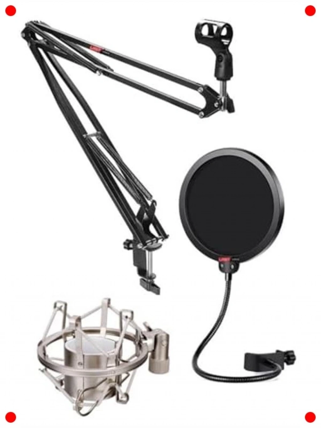 Ev stüdyonuzda veya profesyonel kayıt ortamınızda en iyi ses kalitesini elde etmek için tasarlanmış bu eksiksiz mikrofon seti, temel aksesuarları bir araya getiriyor. Set içerisinde sağlam bir masa tipi mikrofon standı, patlama seslerini engelleyen pop filtre ve mikrofonunuzu titreşimlerden koruyan bir shock mount bulunur. Bu ekipmanlar sayesinde vokalleriniz ve enstrüman kayıtlarınız çok daha temiz ve profesyonel duyulur. Kurulumu kolaydır ve çoğu stüdyo kondansatör mikrofonuyla uyumludur. Ses kayıtlarınızda istenmeyen gürültüyü en aza indirerek pürüzsüz bir performans sağlar.