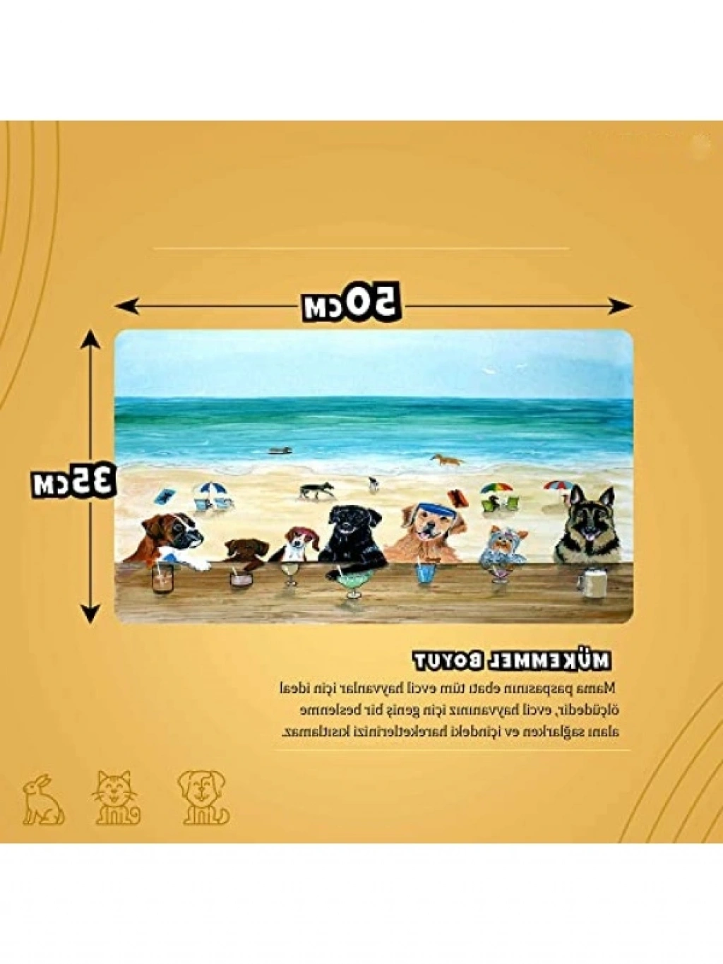 Kedi ve köpekler için tasarlanmış bu beslenme matı, 50x35 cm ölçülerinde geniş bir yüzey sunar. Temizlemesi son derece kolay olan bu mat, su geçirmez kauçuk tabanı ile yiyecek ve su dökülmelerine karşı koruma sağlar. Şık tasarımı, evinize dekoratif bir detay katar. Kaymaz özellikteki alt yüzeyi, matın yerinden oynamasını önler. Hem mama kabı hem de su kabı için kullanılabilir, evcil hayvanınızın beslenme alanını düzenli ve temiz tutar.