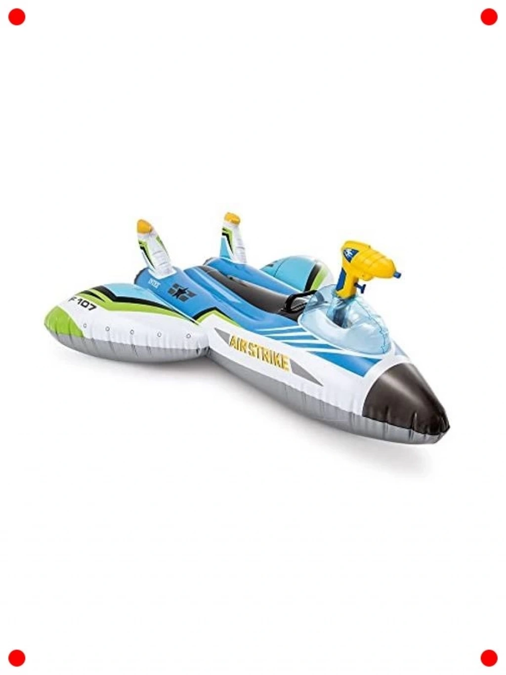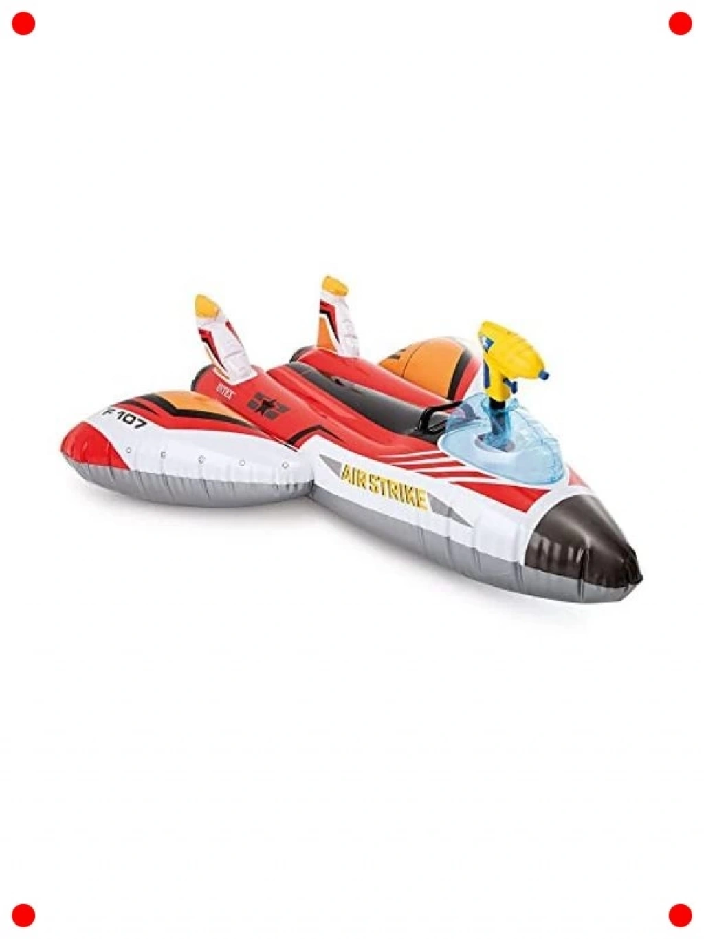 Havuz ve plaj partilerinin vazgeçilmezi olacak bu şişme uçakla su savaşlarına hazır olun! 117 cm uzunluğundaki bu eğlenceli uçak, üzerinde yer alan su tabancasıyla çift kat keyif sunar. Dayanıklı ve kaliteli malzemeden üretilmiş olup, yaz boyunca güvenli ve uzun süreli kullanım sağlar. Şişme tasarımı sayesinde kolayca taşınabilir ve depolanabilir. Çocukların ve yetişkinlerin birlikte eğlenebileceği, serinletici ve aktif bir yaz aktivitesi için idealdir. Su sporlarına yeni bir boyut katan bu eşsiz ürünle, güneşin ve suyun tadını çıkarırken unutulmaz anılar biriktirin.