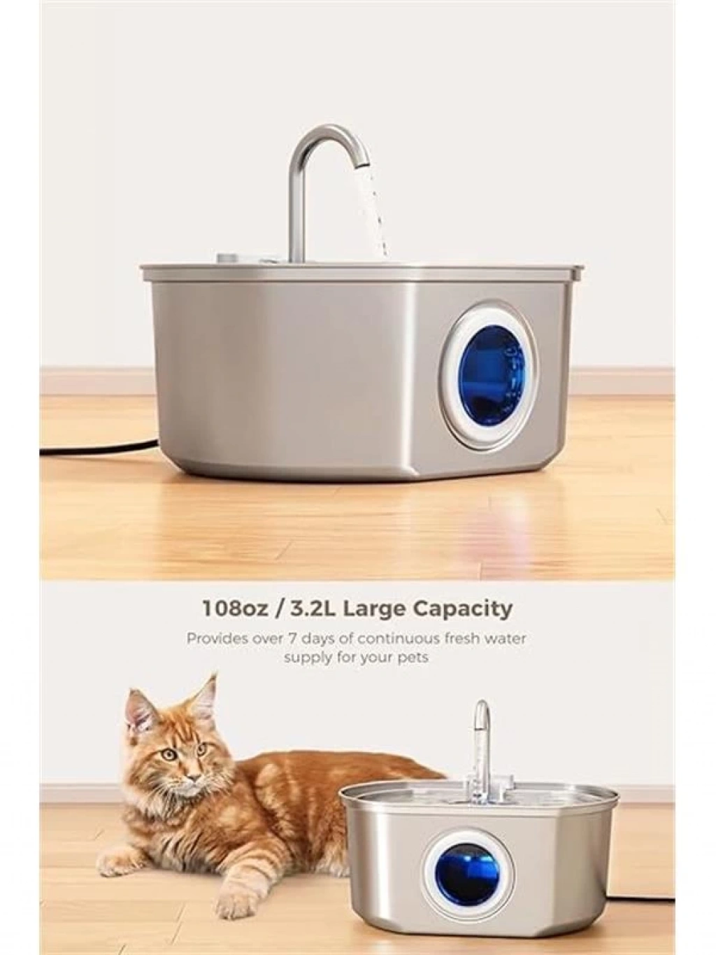 Bu ürün hakkında KAPASİTE 32 litre büyük hacimli su haznesi evcil hayvanınızın uzun süre temiz suya erişimini sağlar MALZEME Yüksek kaliteli paslanmaz çelik yapı dayanıklılık ve kolay temizlik sunar SU SEVİYE GÖSTERGESİ Mavi LED ışıklı gösterge ile su seviyesini kolayca takip edebilme imkanı TASARIM Geniş içme alanı ve sürekli akan taze su sistemi ile evcil hayvanınızın su içmesini teşvik eder PRATİK KULLANIM Kolay doldurma ve temizleme için çıkarılabilir parçalar sessiz çalışma özelliği
