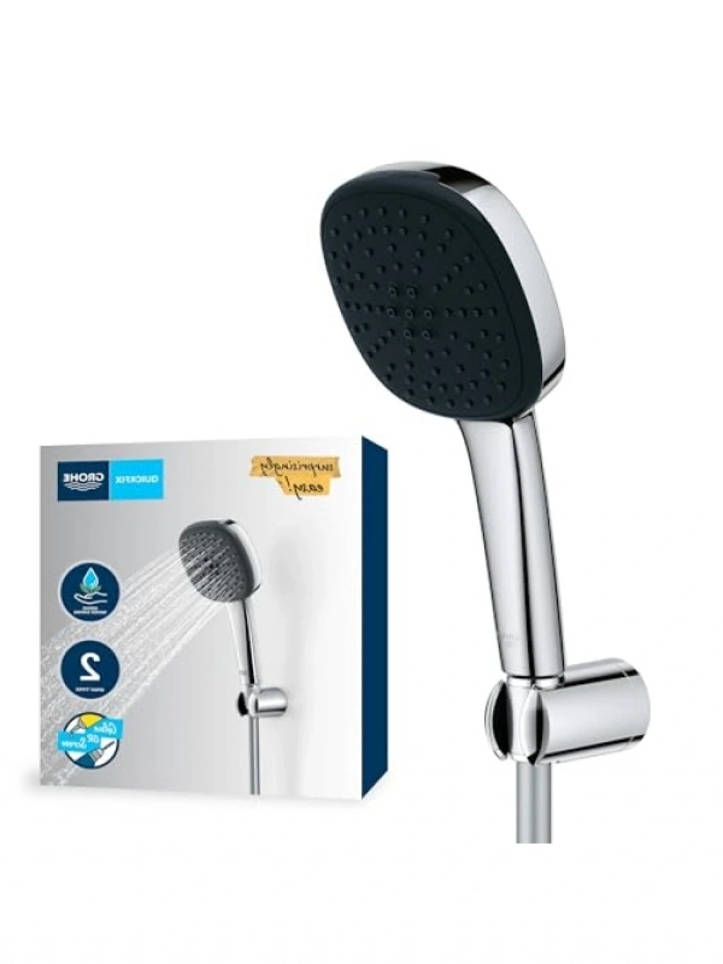 Bu su tasarruflu el duşu seti, 110 mm kare başlığı ile yüksek verimlilik sunar. İki akışlı yapısı ile enerji verimliliği sağlarken, silikon başlıkları sayesinde kireç birikintilerini kolayca temizleyebilirsiniz. Krom kaplama, estetik bir görünüm sunar ve kullanım kılavuzu ile birlikte gelir. Duş hortumu ve tutucu ile pratik montaj imkanı sağlar.