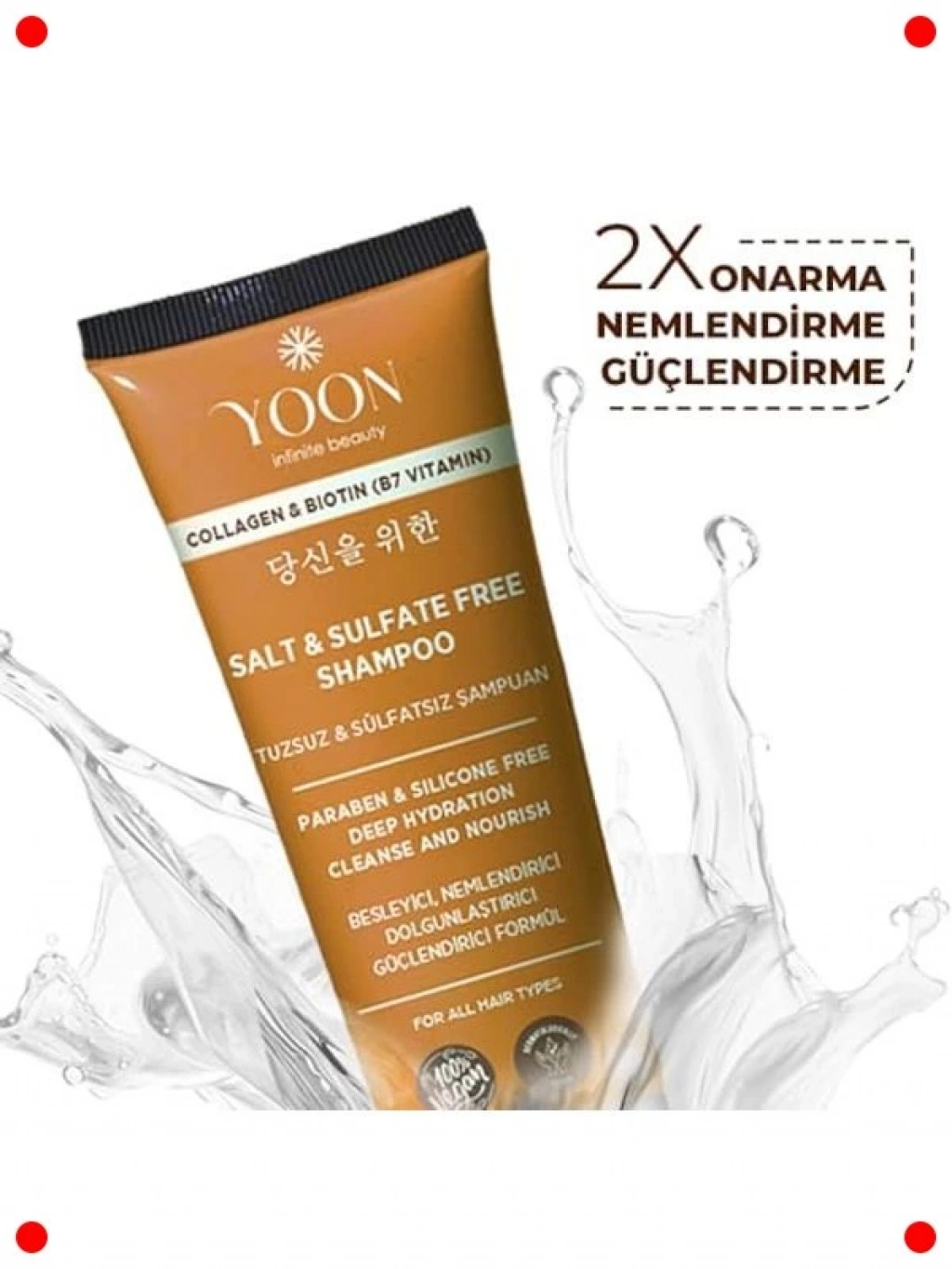 Saçlarınıza nazik ve etkili bir bakım sunan bu sülfatsız ve tuzsuz vegan şampuan, 250 ml'lik özel formülüyle kolajen, biotin (B7 vitamini) içerir. Parabensiz yapısıyla saç derisine zarar vermeden derinlemesine temizlik sağlar. Kolajen ve biotin, saç tellerini güçlendirerek kırılmayı azaltmaya ve saç dökülmesine karşı savaşmaya yardımcı olur. Aynı zamanda saçları besler ve nemlendirerek daha parlak, yumuşak ve elastik bir yapıya kavuşmasını destekler. Vegan formülü sayesinde hayvan dostu bir seçenektir. Hassas saç derileri ve işlem görmüş saçlar için idealdir. Sağlıklı ve canlı saçlara kavuşmak için bu besleyici şampuanı tercih edin.