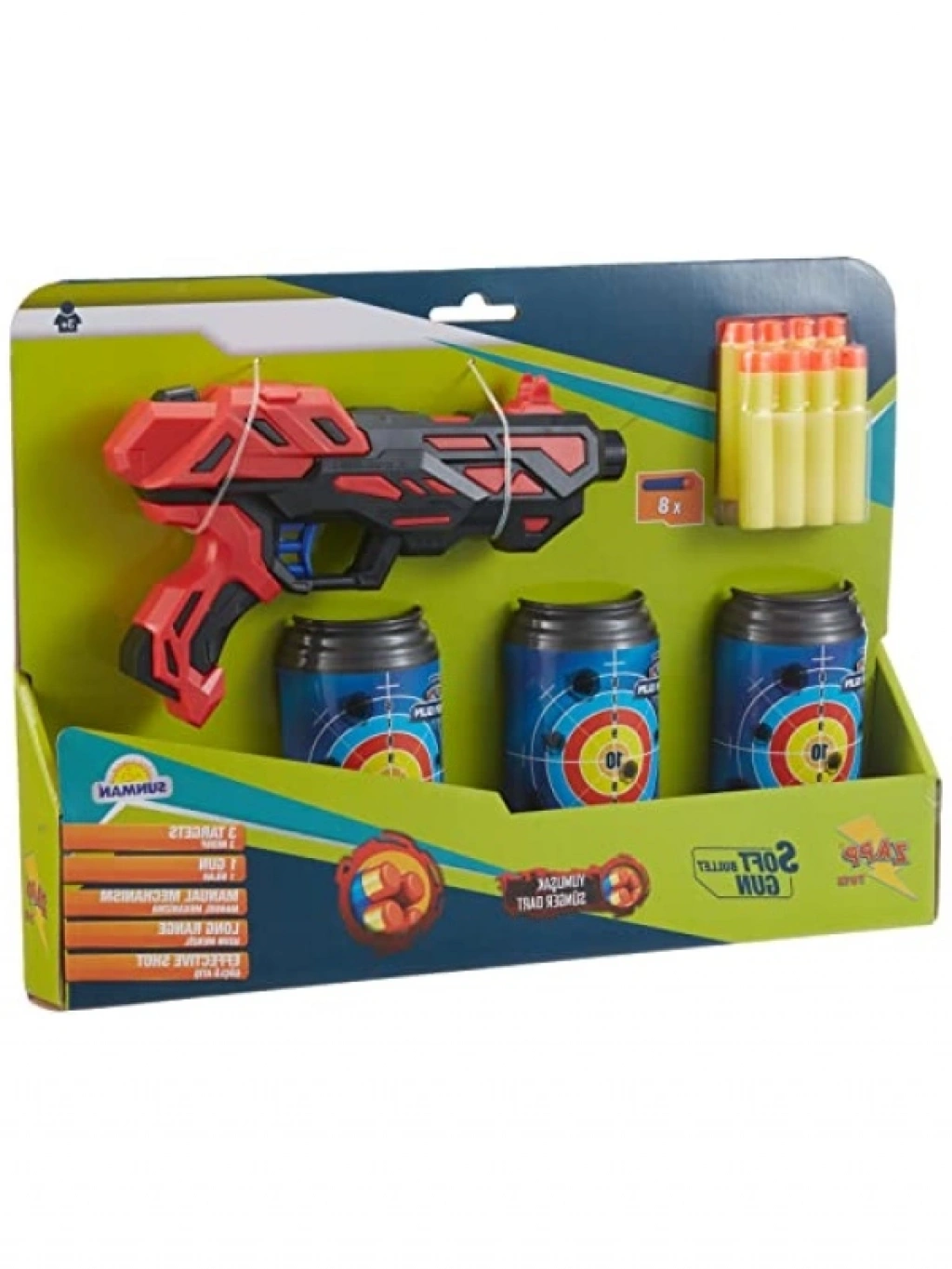 Bu sünger atan silah seti, 8 mermi ve 3 hedef ile birlikte gelir ve eğlenceli oyun saatleri için idealdir. Dayanıklı ve güvenilir malzemelerden üretilmiştir, çocukların güvenliği göz önünde bulundurularak tasarlanmıştır. Hedefleri vurma becerisini geliştiren bu set, çocukların motor becerilerini ve el-göz koordinasyonunu artırmalarına yardımcı olur.