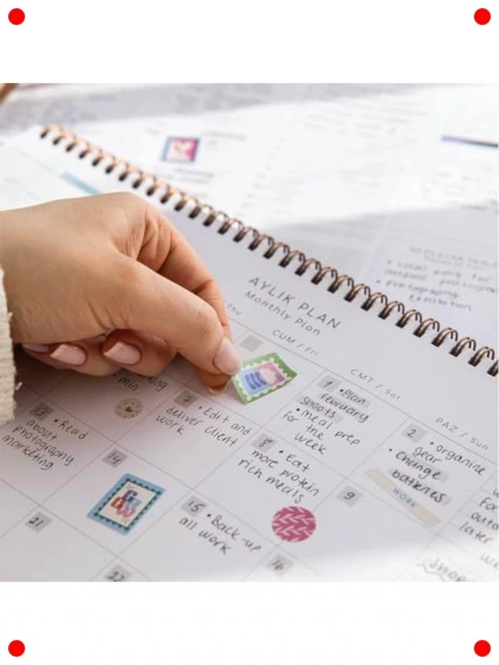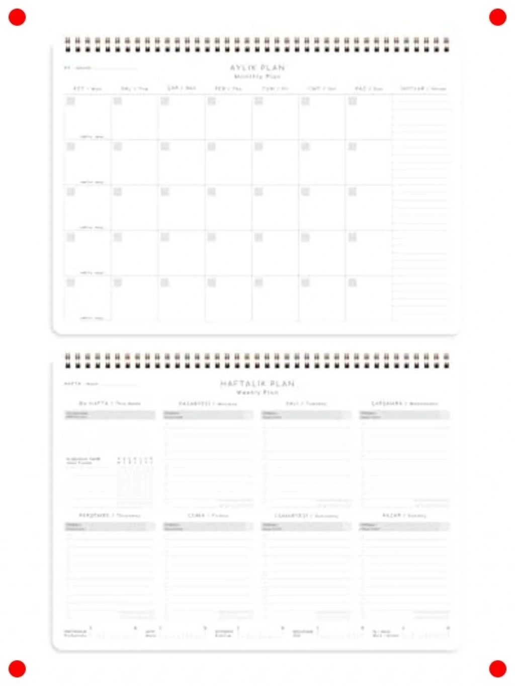 Haftalık planlarınızı kolayca organize etmek ve verimliliğinizi artırmak için bu süresiz masaüstü planlayıcıyı kullanın. 24x34 cm boyutlarındaki geniş yapısı, tüm görevlerinizi, randevularınızı ve notlarınızı rahatça yazmanıza olanak tanır. Süresiz formatı sayesinde istediğiniz zaman kullanmaya başlayabilir ve hiçbir sayfayı boşa harcamadan planlayıcınızın ömrünü uzatabilirsiniz. Spiralli ciltleme, sayfaların kolayca çevrilmesini sağlar ve masanızda düz bir şekilde durur. Siyah rengiyle profesyonel ve şık bir görünüm sunar. Evde, ofiste veya okulda zaman yönetimi ve görev takibi için ideal bir yardımcıdır.