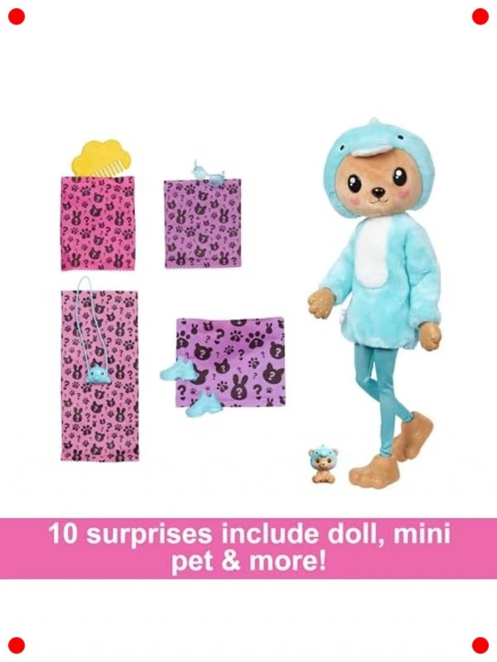 Her kutuda sürprizlerle dolu bu sevimli bebek, açılış anından itibaren heyecan verici bir deneyim sunuyor. Bebek, şirin bir yunus kostümünün içinde gizlenmiş olarak gelir ve bu kostüm kolayca çıkarılarak bebeğin gerçek görünümü ortaya çıkarılabilir. Çocuklar, bu benzersiz unboxing deneyimiyle hem eğlenir hem de hayal güçlerini harekete geçirir. Bebek ve aksesuarları, rol yapma oyunlarına ve yaratıcı hikaye anlatımına ilham verir. Koleksiyoncular için de ideal olan bu seri, çocukların kişiselleştirme ve keşfetme arzusunu besler. Tatlı ve eğlenceli bir hediye seçeneğidir, çocukların yüzünde gülümseme yaratır.