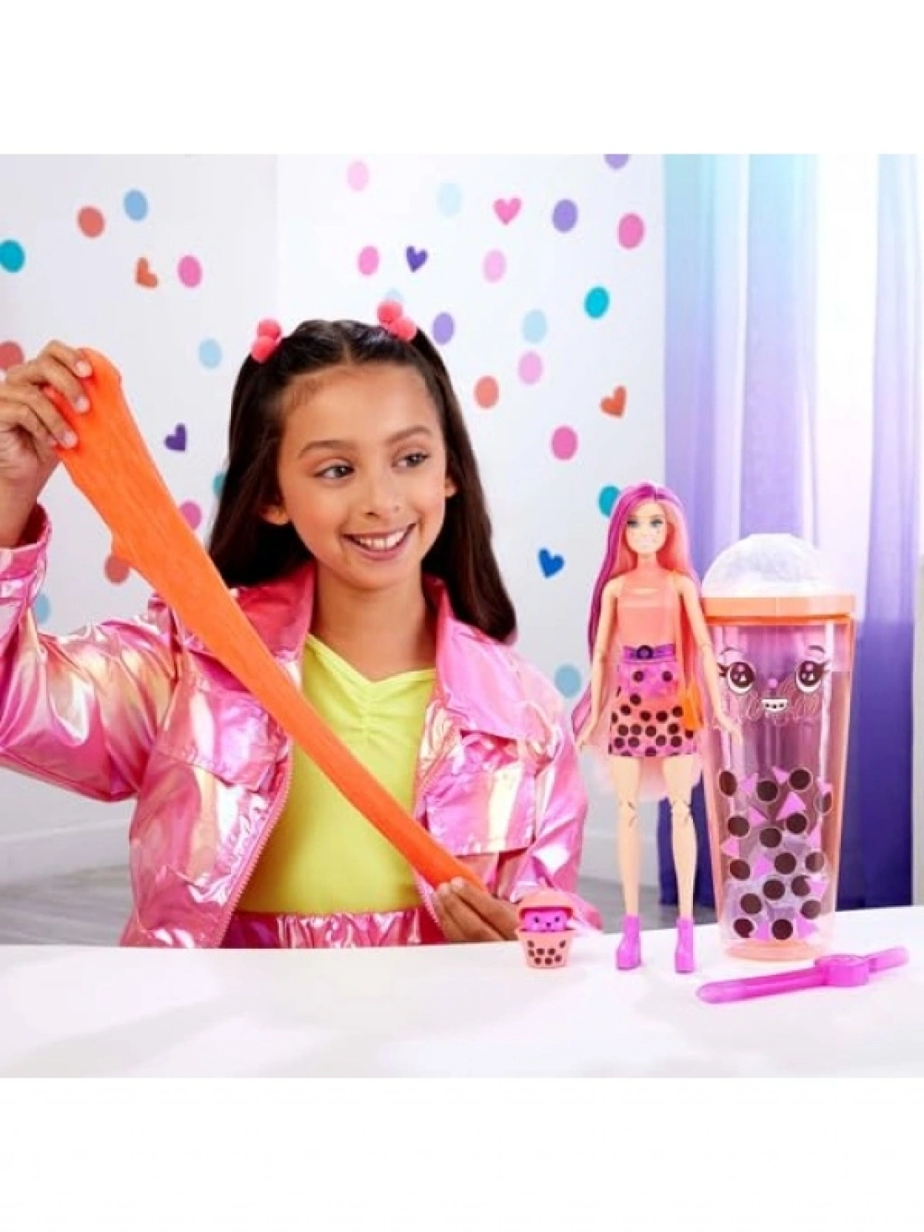 Bu özel bebek seti, 'bubble tea' temalı eğlenceli bir paket açma deneyimi sunuyor. İçerisinde 8 sürpriz bulunan bu set, çocukların hayal gücünü geliştirmeye yardımcı olurken, yumuşacık bir eğlence sunuyor. Koyu pembe ışıltılı uzun sarı saçlara sahip bebek, eklemleri bükülebilir özelliği ile çocukların oynarken daha fazla eğlenmesini sağlar. Setin içeriğinde ayrıca rengarenk bir etek, bir çift ayakkabı, bir çanta ve yumuşacık bir evcil hayvan ile uyumlu içecek aksesuarı bulunmaktadır. Bu sürprizlerle dolu set, her oyun saatini daha keyifli hale getirecek!