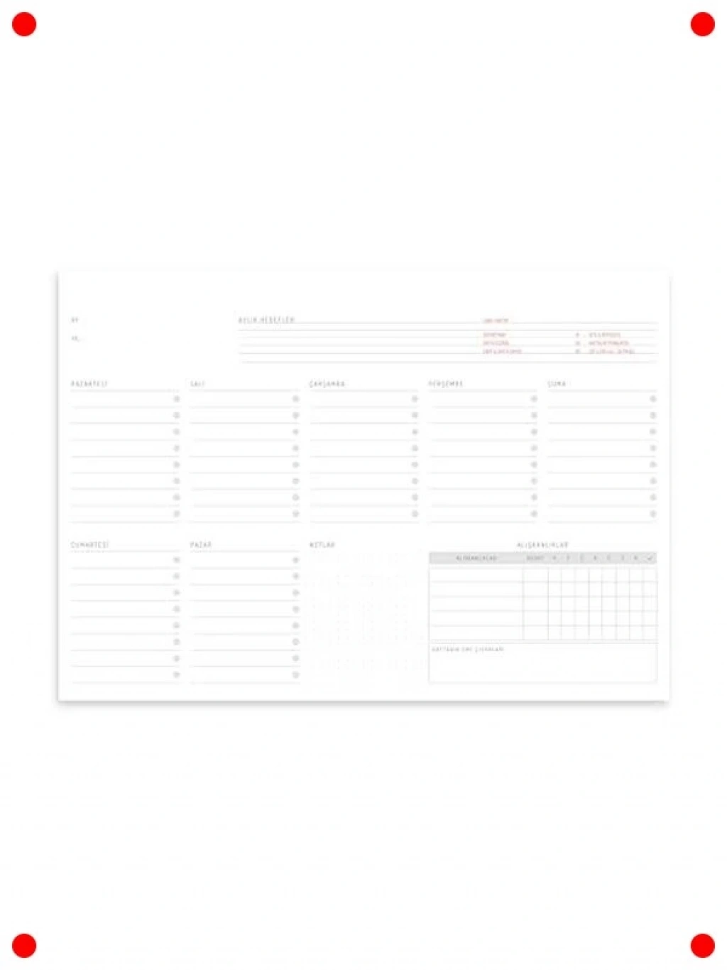 Hayatınızı düzene sokmak ve hedeflerinize ulaşmak için mükemmel bir yardımcı olan bu tarihsiz haftalık A4 planlayıcı defter ile tanışın. Yılın veya ayın hangi döneminde olursanız olun kullanmaya başlayabileceğiniz esnek bir yapıya sahiptir. Geniş A4 boyutu (21cm x 29.7cm), tüm görevlerinizi, randevularınızı, notlarınızı ve hedeflerinizi detaylıca kaydetmek için bolca alan sunar. Her hafta için ayrılmış özel bölümler sayesinde programınızı kolayca takip edebilir, önceliklerinizi belirleyebilir ve kişisel veya profesyonel verimliliğinizi artırabilirsiniz. Kaliteli kağıdı mürekkep akmasını önler, yazım ve çizimleriniz için pürüzsüz bir yüzey sağlar. Öğrenciler, profesyoneller ve yoğun bir yaşam tarzına sahip herkes için idealdir.