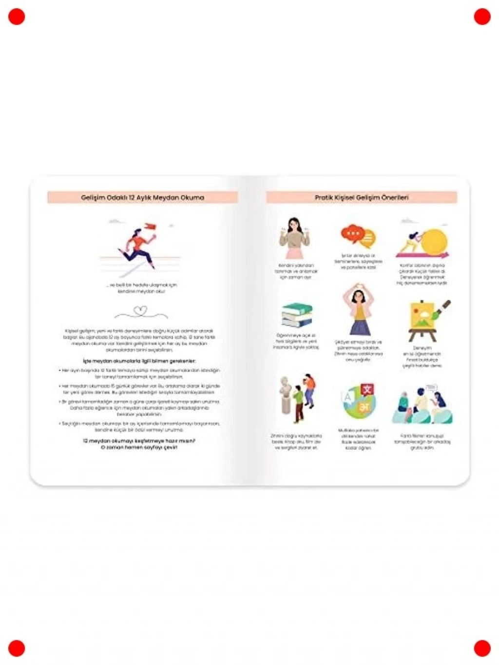 Hayatınızı düzenlemeniz ve hedeflerinize ulaşmanız için özel olarak tasarlanmış bu tarihsiz haftalık ajanda, esnek kullanım imkanı sunar. 17x24cm boyutuyla hem yeterli yazım alanı sağlar hem de kolayca taşınabilir. Tarihsiz formatı sayesinde dilediğiniz zaman kullanmaya başlayabilir, hiçbir sayfayı boşa harcamazsınız. Haftalık planlama alanları, görev listeleri ve kişisel gelişim notları için ayrılmış bölümleriyle verimliliğinizi artırır. Yüksek kaliteli kağıtları, mürekkebin arkaya geçmesini engeller. Hedeflerinize odaklanmanızı, alışkanlıklarınızı takip etmenizi ve yaşamınızı organize etmenizi sağlayan pratik bir araçtır.
