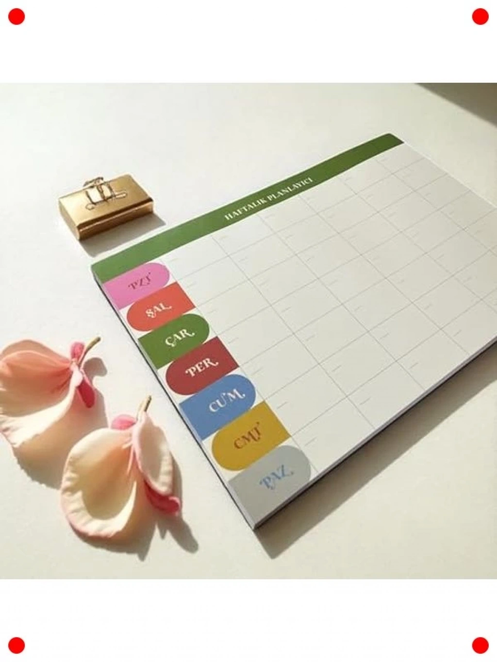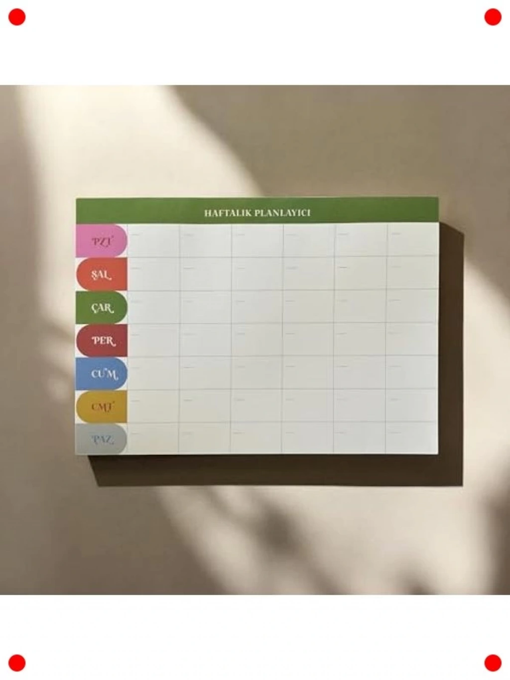 Haftalık planlarınızı düzenlemenin en pratik yolu! Bu tarihsiz A4 masa planlayıcı, minimalist tasarımıyla çalışma alanınıza modern bir dokunuş katar. 80 yapraklık geniş kullanım alanı sayesinde bir yıl boyunca rahatlıkla planlama yapmanızı sağlar. Haftalık hedeflerinizi, önemli randevularınızı ve yapılması gerekenleri tek bir bakışta görmenize yardımcı olur. Ofis ve ev kullanımına uygun bu takip bloku, tarihsiz oluşu sayesinde istediğiniz zaman kullanmaya başlayabilir, hiçbir sayfayı boşa harcamazsınız. Verimliliğinizi artırırken masanızı düzenli tutar.
