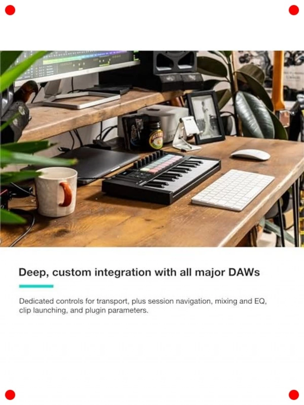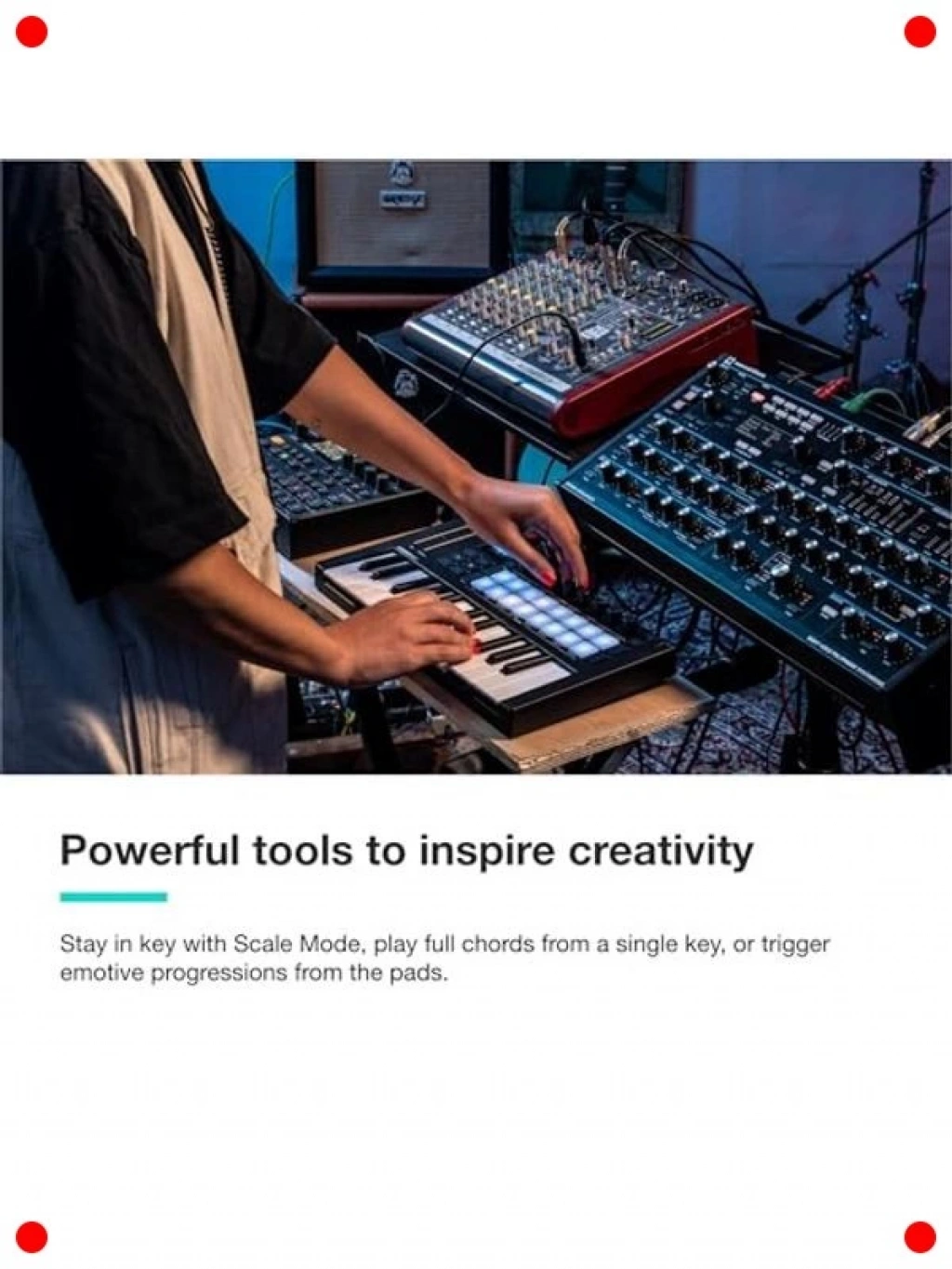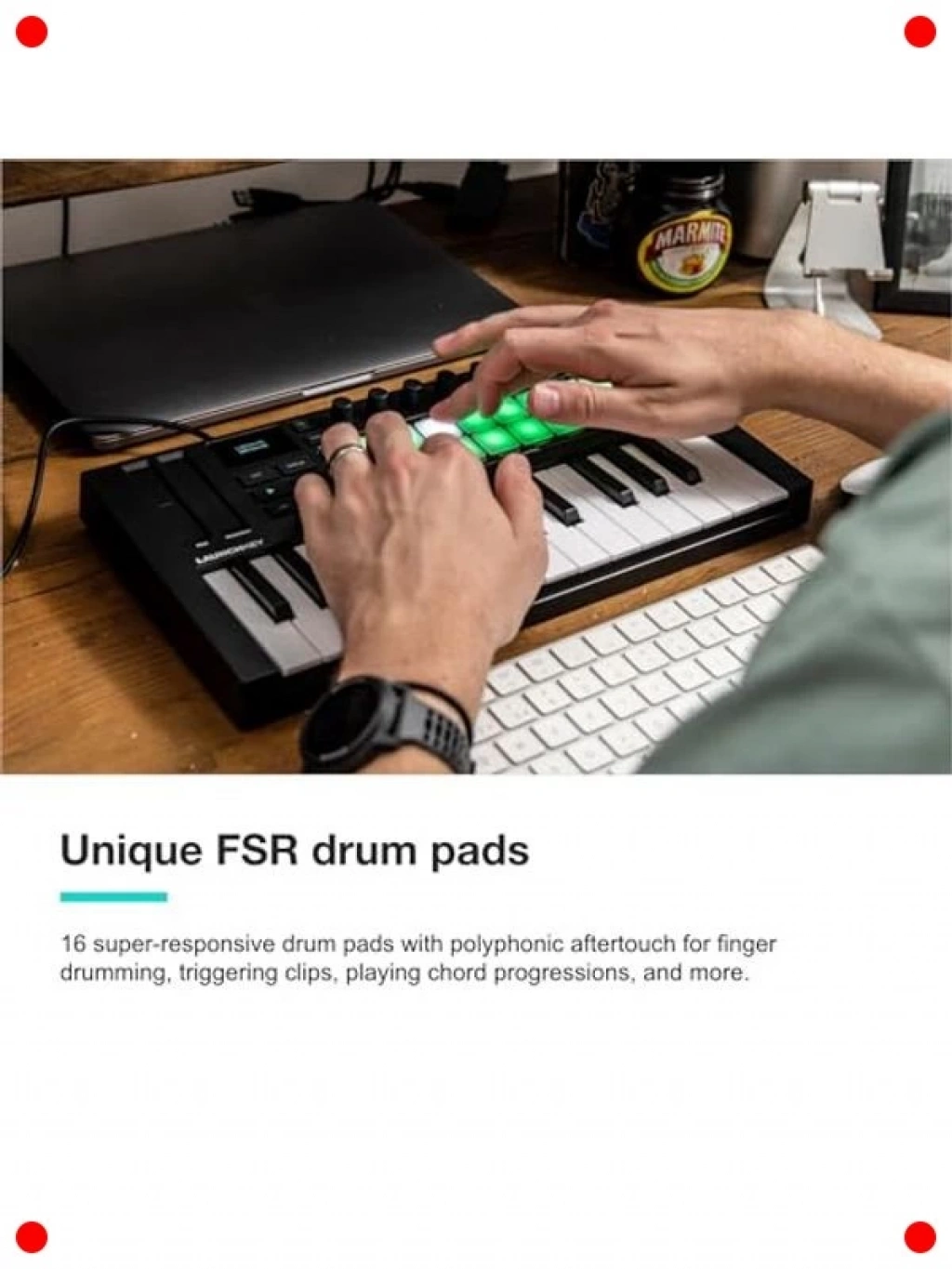 Müzik prodüksiyonunu her yere taşıyan bu kompakt ve çok yönlü 25 mini tuşlu USB MIDI klavye kontrolcü ile yaratıcılığınızı serbest bırakın. DAW (Dijital Ses İş İstasyonu) entegrasyonu sayesinde müzik yazılımlarınızla sorunsuz bir şekilde çalışır. Akor modu, ölçek modu ve davul pedleri gibi özelliklerle donatılmış olup, ilham verici melodiler ve ritimler oluşturmanızı kolaylaştırır. Dahili arpejjatör, karmaşık arpejleri tek tuşla çalmanızı sağlar. Üstelik müzik yaratma yazılım paketiyle birlikte gelir, böylece hemen kayda başlayabilirsiniz. Stüdyoda veya yolda ideal bir müzik arkadaşıdır.