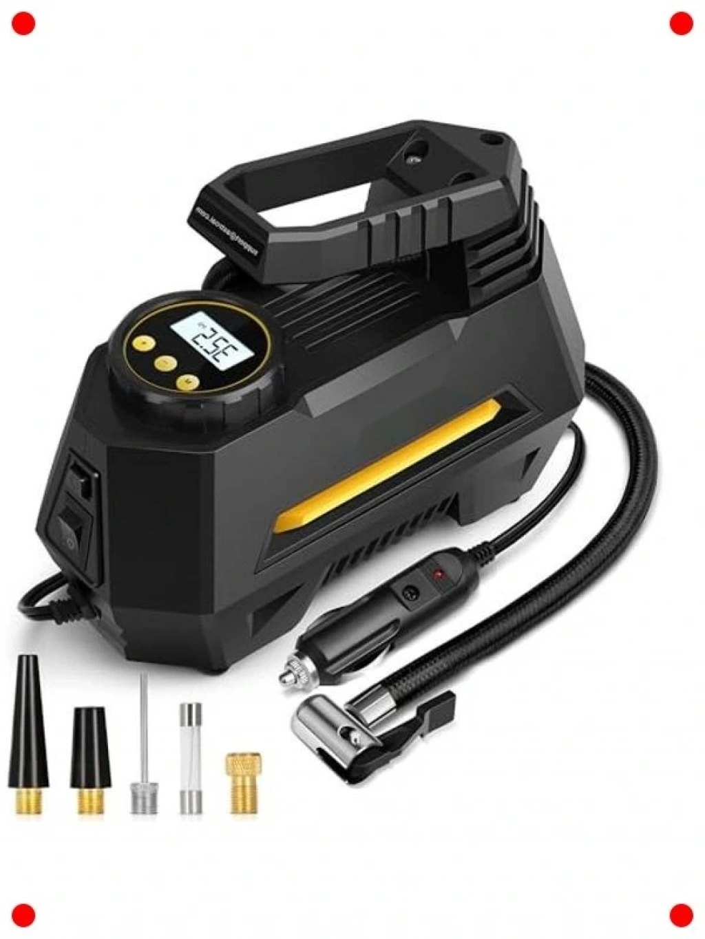 Yolculuklarınızda lastik basıncı endişesini ortadan kaldırın! Bu taşınabilir araç hava kompresörü, acil durumlarda veya düzenli lastik bakımı için vazgeçilmez bir yardımcıdır. 150 PSI gücüyle oto, motosiklet, bisiklet lastiklerini ve spor ekipmanlarını ca şişirebilir. 12V araç çakmak girişinden güç alarak kolayca kullanılır. Kompakt ve hafif tasarımı sayesinde bagajınızda veya torpido gözünüzde az yer kaplar. Dijital göstergesi, doğru lastik basıncını ayarlamanıza yardımcı olur ve otomatik kapanma özelliği sayesinde aşırı şişmeyi önler. Dahili LED ışığı, gece veya karanlık ortamlarda kullanım kolaylığı sunar. Her sürücünün aracında bulunması gereken, güvenliği artıran pratik bir üründür.