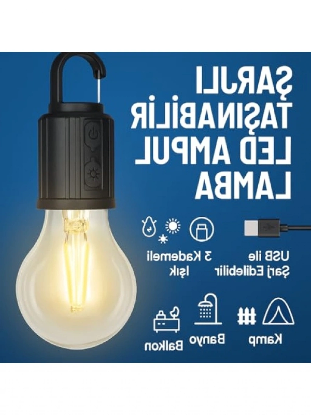 Bu taşınabilir LED ampul, USB ile şarj edilebilir özelliği ile ekonomik ve pratik bir aydınlatma çözümüdür. 3 kademeli ayarlanabilir parlaklık seçenekleri ile her ortamda uygun aydınlatmayı sağlar. Asma kancalı tasarımı sayesinde kamp, dolap, banyo gibi alanlarda kolayca kullanılabilir. Dayanıklı ve sarsıntıya dayanıklı yapısı ile uzun ömürlü kullanım sunar. Acil durumlarda güvenilir bir aydınlatma kaynağıdır.