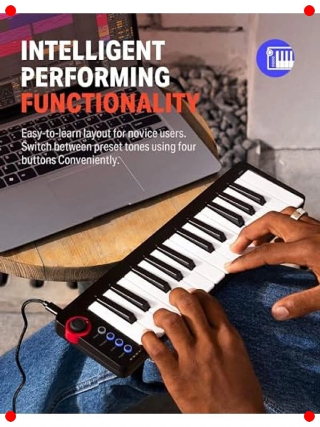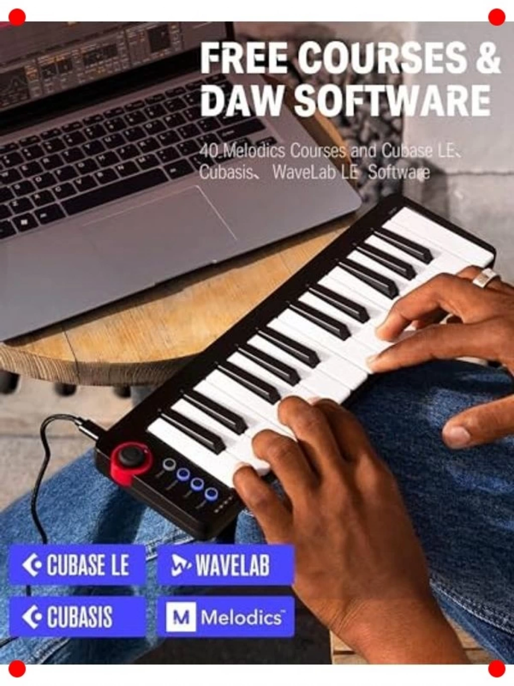 Müzik üretimi ve performans için tasarlanmış bu taşınabilir MIDI klavye, kompakt tasarımıyla her yerde yaratıcılığınızı serbest bırakmanızı sağlar. 25 hassas tuşu ve duyarlı pad'leri sayesinde melodileri, akorları ve ritimleri kolayca çalabilir, dinamik bir ifade elde edebilirsiniz. Çok yönlü kontrol düğmeleri ve butonları, yazılımınızdaki sanal enstrümanları ve efektleri doğrudan klavyenizden yönetmenize olanak tanır. USB bağlantısı ile bilgisayarınıza veya diğer uyumlu cihazlara kolayca bağlanır, tak ve çalıştır özelliği sayesinde kurulum derdi yaşamazsınız. Hem stüdyo ortamında hem de hareket halindeyken ilham geldiğinde kullanabileceğiniz bu klavye, müzikal fikirlerinizi gerçeğe dönüştürmek için güçlü bir araçtır.