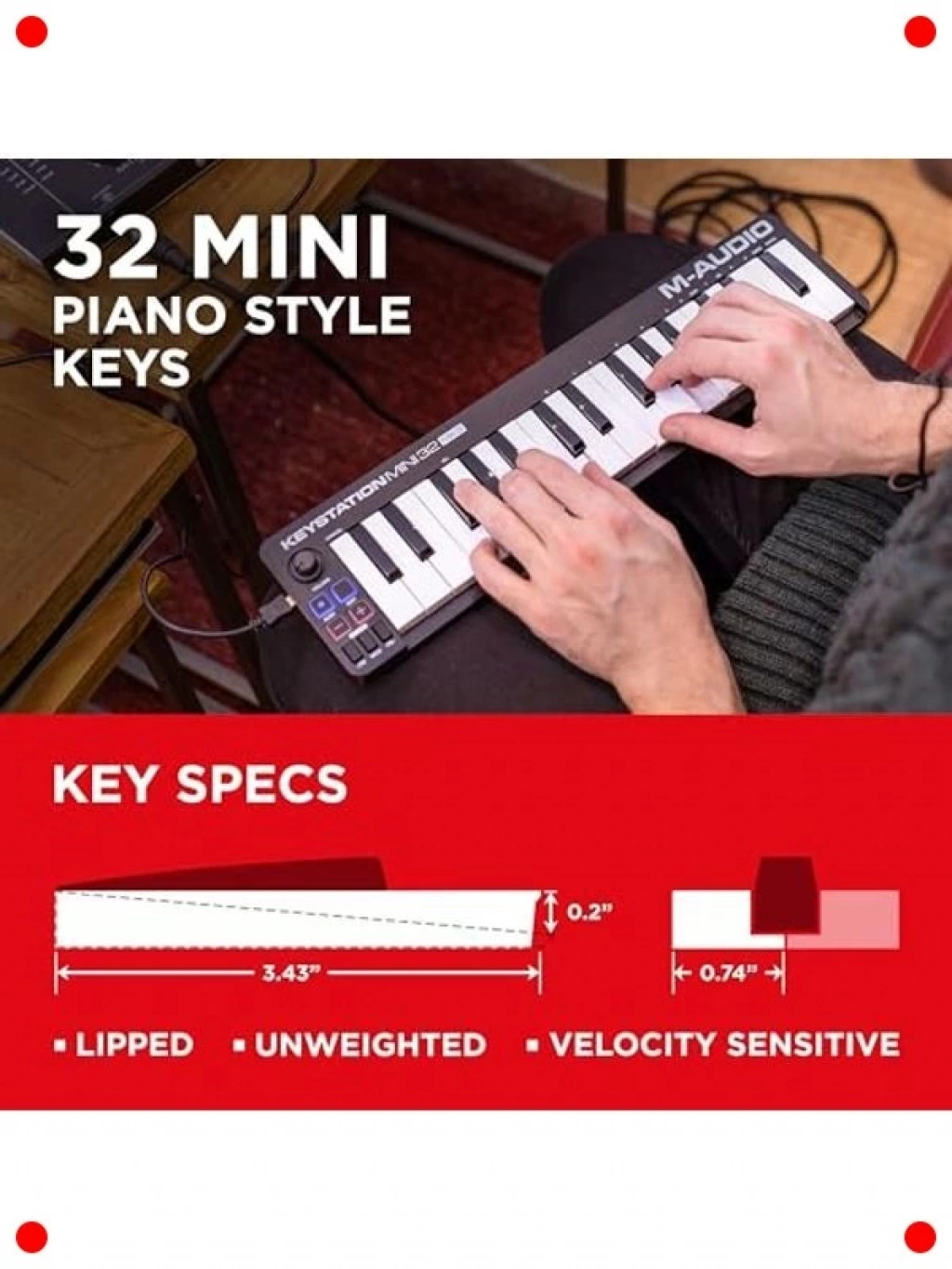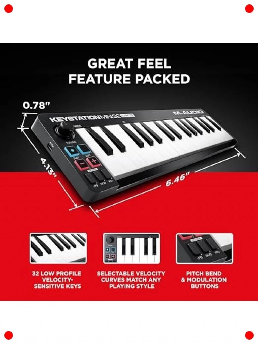 Mobil müzik üretimi için tasarlanmış bu kompakt USB MIDI klavye kontrolcü, gittiğiniz her yere stüdyonuzu taşımanızı sağlar. 32 hıza duyarlı mini tuşu ile ifadeli performanslar sergileyebilir, yaratıcılığınızı her an canlandırabilirsiniz. USB bağlantısı sayesinde güç ve MIDI verisi tek kablo üzerinden sağlanır, bu da kurulumu son derece basitleştirir. Hafif ve dayanıklı yapısıyla seyahat eden müzisyenler için idealdir. Çoğu müzik yazılımı ile uyumlu olup, prodüksiyon ve canlı performanslarınızda size esneklik ve kontrol sunar. Yeni başlayanlardan profesyonellere kadar herkes için mükemmel bir araçtır.