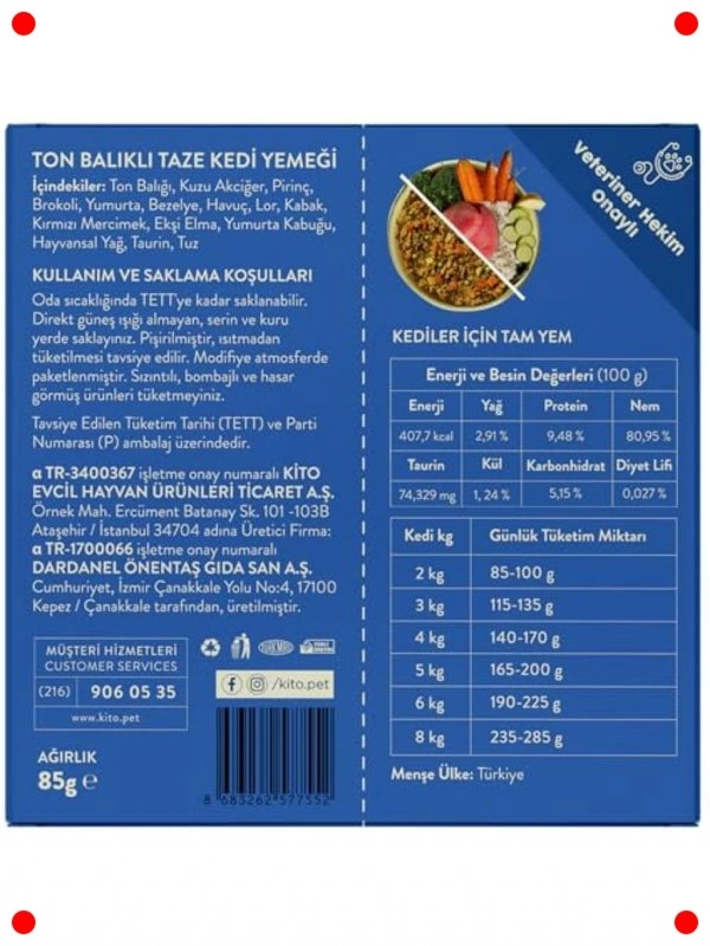 Kedinizin damak zevkine hitap eden, taze ton balığı ile hazırlanmış bu özel yaş mama, lezzet ve besin değerini bir arada sunar. Yüksek kaliteli protein içeriği sayesinde kedinizin kas gelişimini desteklerken, omega yağ asitleri ile sağlıklı bir deri ve parlak tüylerin oluşumuna yardımcı olur. İçeriğindeki vitamin ve mineraller, kedinizin bağışıklık sistemini güçlendirir ve genel sağlığını korur. Taze ve doğal bileşenlerle üretilmiş bu mama, kedinizin günlük beslenme ihtiyacını eksiksiz karşılar. Tek porsiyonluk ambalajıyla tazeliğini korur ve pratik kullanım sunar. Kedinize her öğünde taptaze bir lezzet deneyimi yaşatın.