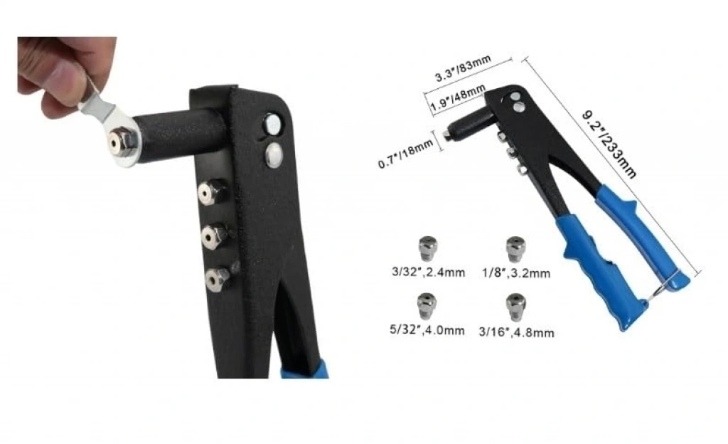 Tek yönlü el perçin tabancası, 40 yedek ile birlikte gelir ve 4 çeşit perçin sunar. Kalın yapısı sayesinde güçlü bir performans sergileyerek, çeşitli uygulamalarda kolaylık sağlar.