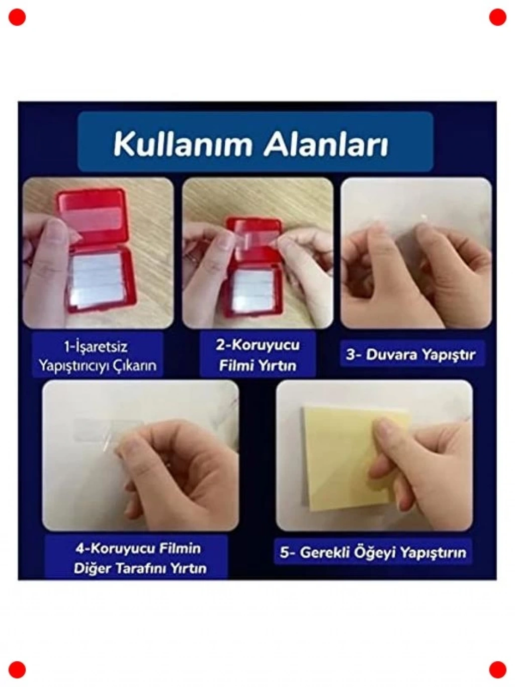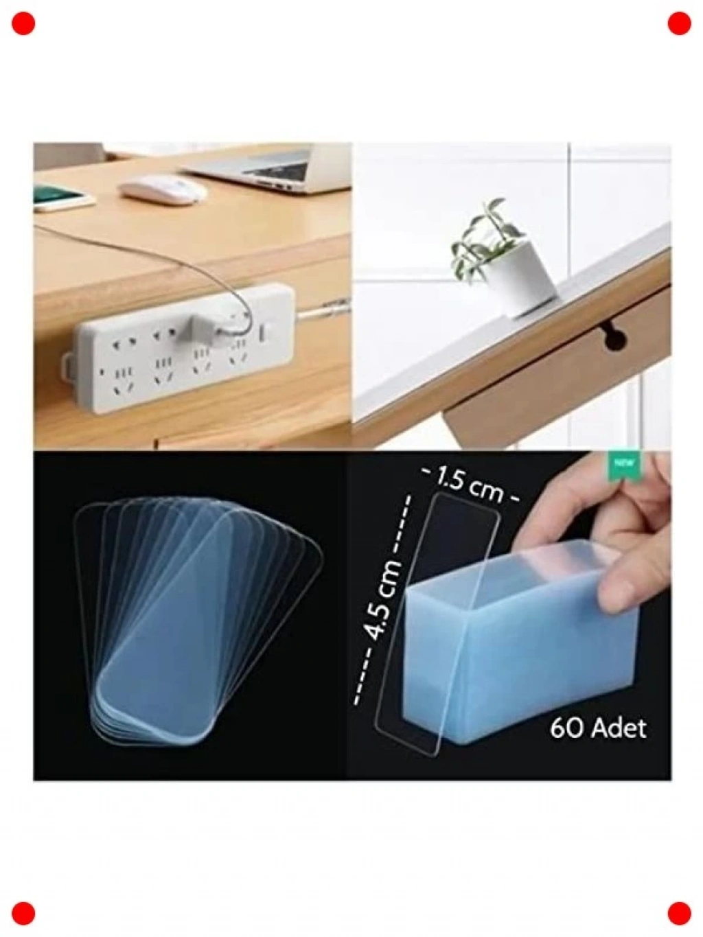 Evde, ofiste veya okulda pratik montaj ve düzenleme ihtiyaçlarınız için tasarlanmış bu 60 parçalı tekrar kullanılabilir şeffaf çift taraflı montaj bandı seti ile hayatınızı kolaylaştırın. Güçlü yapışkan özelliği sayesinde çeşitli yüzeylerde sağlam tutuş sağlar; posterlerden resim çerçevelerine, prizlerden küçük dekoratif objelere kadar birçok eşyayı duvara monte edebilirsiniz. Şeffaf yapısı sayesinde uygulandığı yerde görünmez kalır ve estetik bir görünüm sunar. En büyük avantajı ise tekrar kullanılabilir olmasıdır; kolayca çıkarılabilir, yıkanabilir ve kurutulduktan sonra yapışkanlığını geri kazanır. Böylece defalarca farklı yerlerde kullanabilirsiniz. Duvarlara zarar vermeden eşyalarınızı sabitlemenizi sağlar ve arkasında iz bırakmaz. Kompakt boyutları (1,5 x 4,5 cm) sayesinde her türlü küçük obje için idealdir.