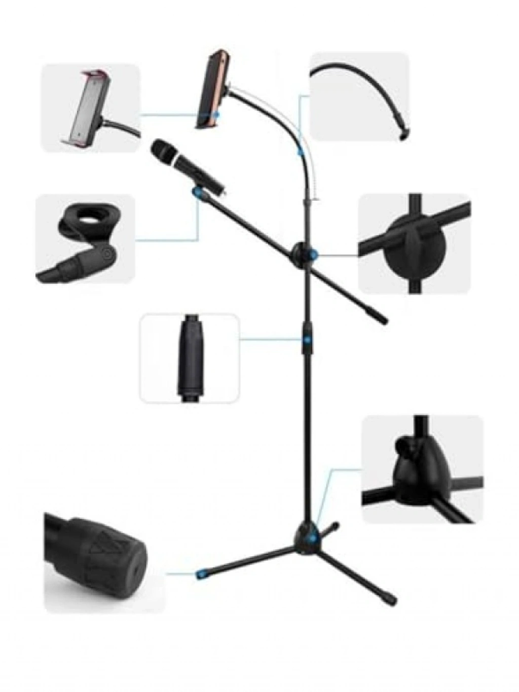 Bu mikrofon standı, telefon ve tablet tutucu özelliği ile müzisyenler için pratik bir kullanım sunar. Ayarlanabilir yükseklik ve sağlam yapısı sayesinde her ortamda güvenilir bir destek sağlar. Hem stüdyo hem de sahne performansları için idealdir, müzik kayıtlarınızı kolaylaştırır.