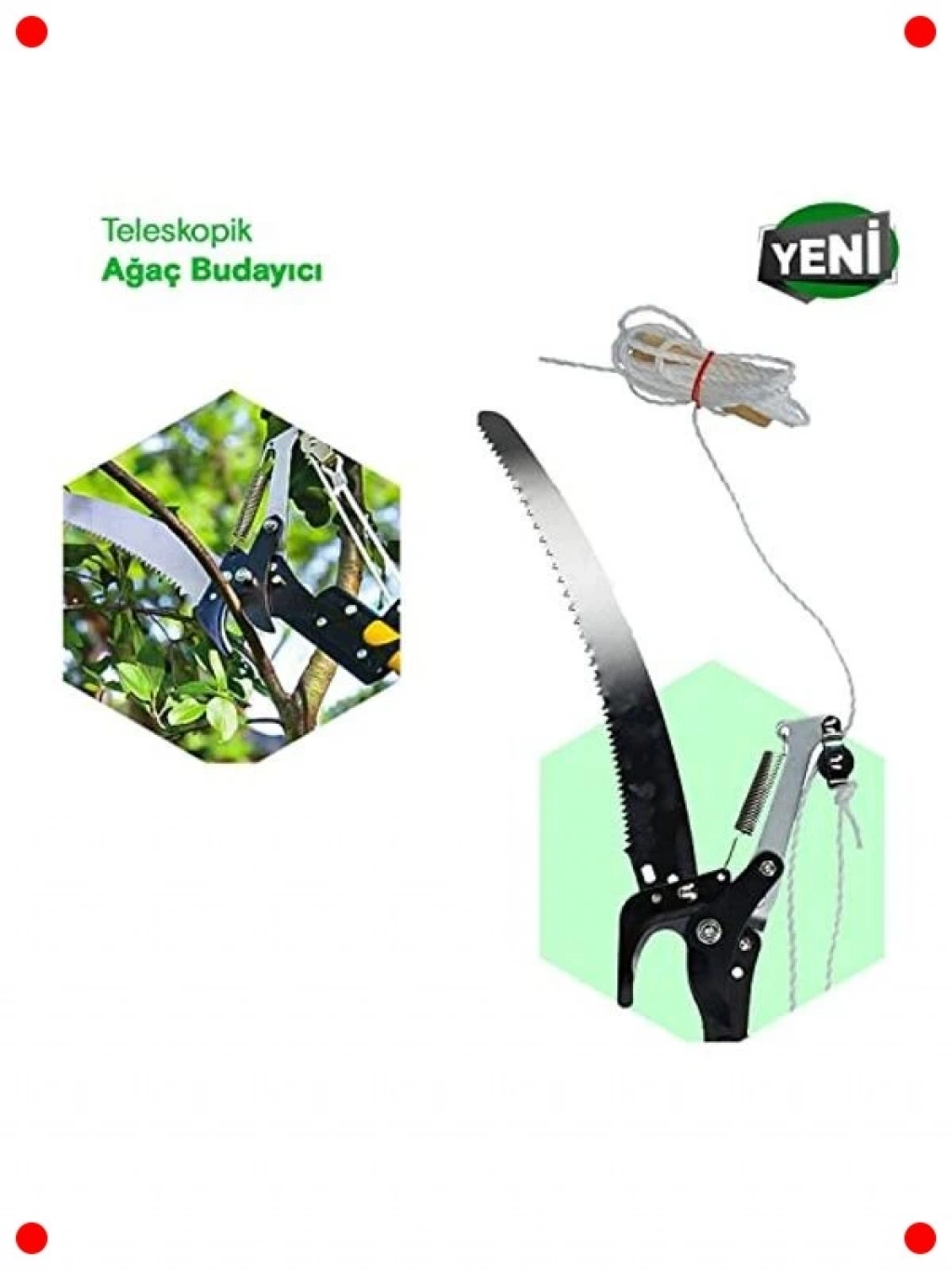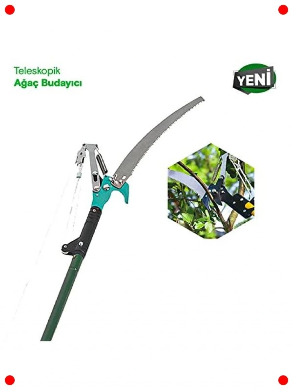 Yüksek dallara güvenli ve zahmetsizce ulaşmak için tasarlanmış bu profesyonel teleskopik budama makası ile tanışın. 280 cm'ye kadar uzayabilen yapısı sayesinde merdiven kullanmadan en zorlu dalları bile kolayca budayabilirsiniz. Keskin bıçağı, temiz ve hassas kesimler yaparak ağaçlarınıza zarar vermeden sağlıklı büyümeyi teşvik eder. Hafif ancak sağlam yapısıyla uzun süreli kullanımlarda bile konfor sağlar. Ergonomik tutuşu sayesinde kontrolü kolaydır ve güvenli bir budama deneyimi sunar. Bahçenizdeki ağaçların bakımı için vazgeçilmez bir araçtır.