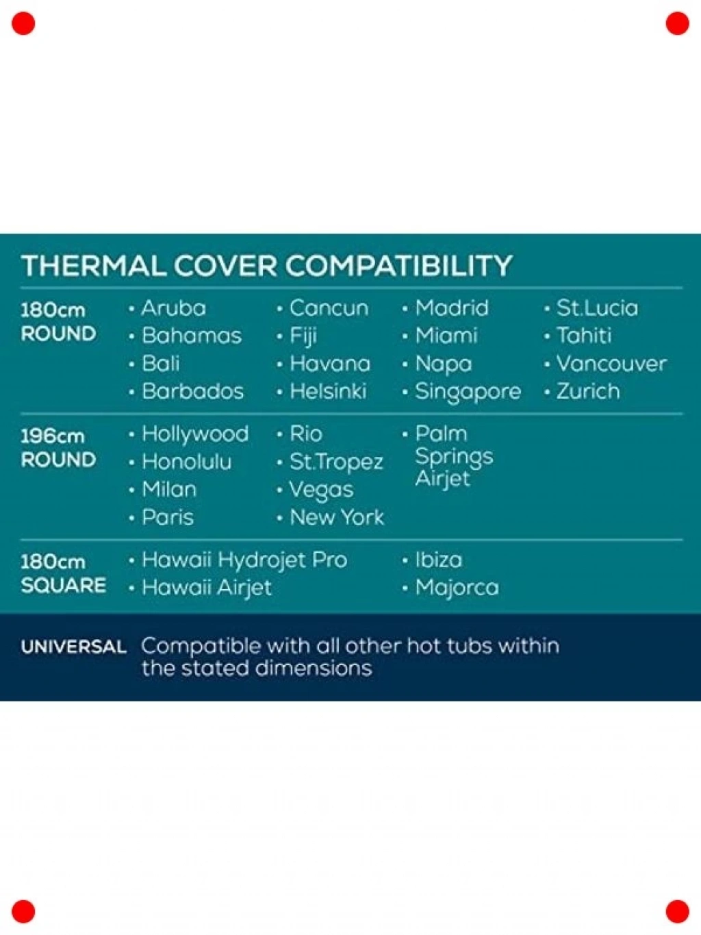 Portatif spa havuzunuz için özel olarak tasarlanmış bu termal örtü ile enerji verimliliğini artırın ve havuzunuzu koruyun. 1.80 metre çapında ve 66 cm yüksekliğindeki standart taşınabilir spalarla uyumlu olan bu örtü, ısı kaybını minimuma indirerek enerji maliyetlerinden tasarruf etmenizi sağlar. Güneşin zararlı UV ışınlarına, yapraklara ve diğer dış etkenlere karşı mükemmel koruma sunarak spa'nızın ömrünü uzatır. Dayanıklı malzemelerden üretilen bu termal örtü, dört mevsim kullanıma uygun olup havuz suyunuzu temiz tutmaya yardımcı olur. Kolayca takılıp çıkarılabilir yapısıyla pratik bir kullanım sunar.