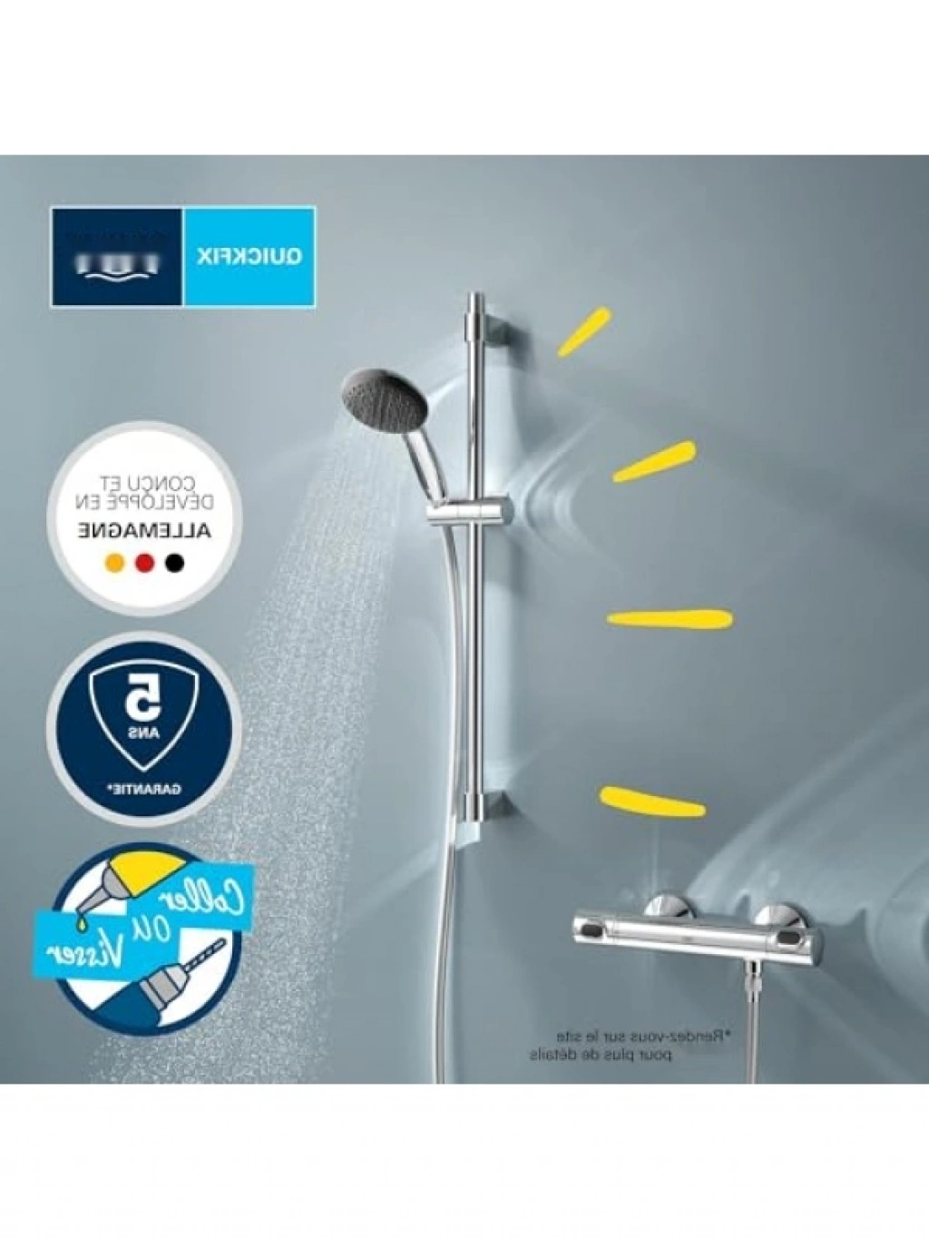 Sürdürülebilir ambalajda sunulan bu termostatik duş seti, modern duş teknolojisi ile donatılmıştır. Su tasarrufu sağlayan özellikleri sayesinde hem enerji tasarrufu yapmanızı sağlar hem de konforlu bir duş deneyimi sunar. 600 mm duş çubuğu, 1 akışlı el duşu ve ayarlanabilir üst tutucu ile montajı kolaydır.