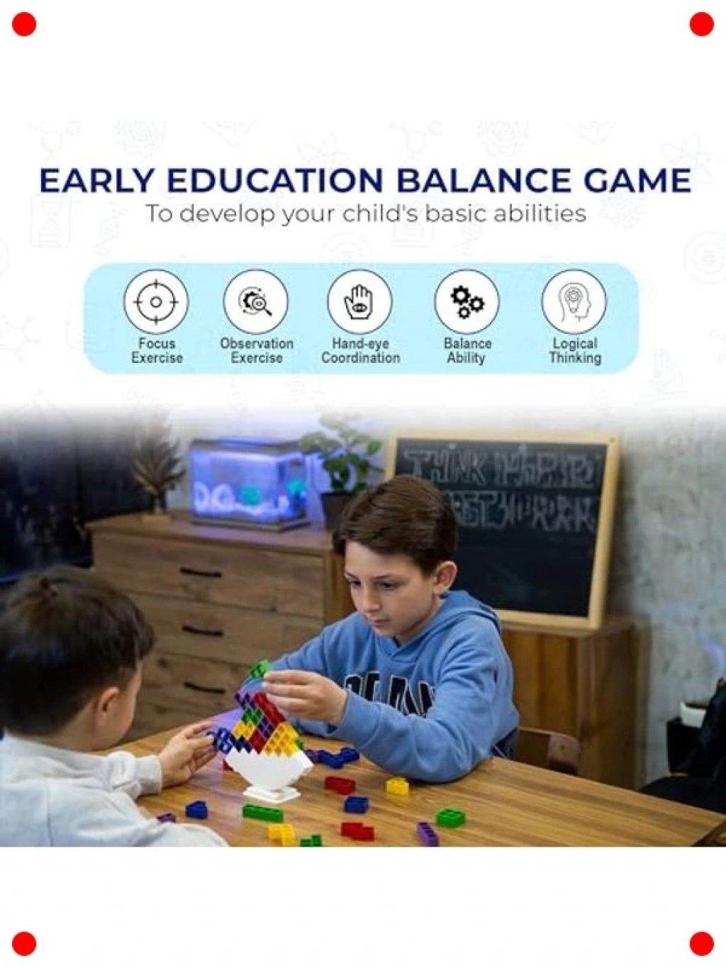 Mantık ve denge becerilerinizi test edecek bu 21 parçalık stratejik kule denge oyunu ile zihninizi çalıştırın. Tetris benzeri farklı şekillerdeki parçaları kullanarak en yüksek kuleyi inşa etmeye çalışırken, kulenin dengesini korumak için stratejik düşünmeniz gerekecek. Hem tek kişilik bir meydan okuma hem de arkadaşlarınızla veya ailenizle keyifli rekabet için harika bir oyundur. İnce motor becerilerini, el-göz koordinasyonunu ve problem çözme yeteneğini geliştirir. Her yaştan oyuncu için saatler süren eğlence sunan bağımlılık yapıcı bir deneyimdir.