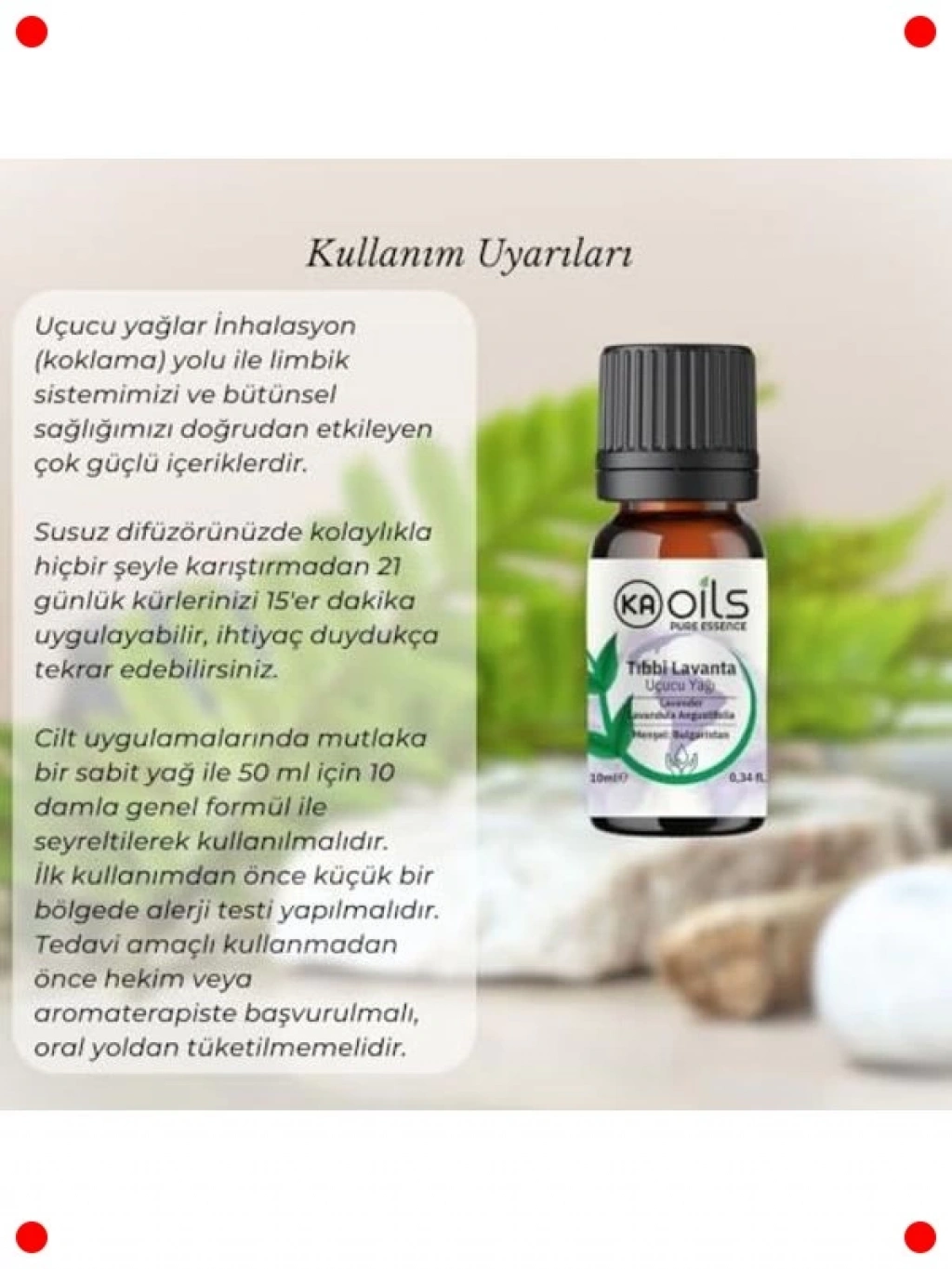 Doğanın yatıştırıcı gücünü keşfedin! %100 saf Lavandula Angustifolia uçucu yağı, aromaterapi ve difüzör kullanımı için idealdir. Özellikle uyku kalitesini artırmaya ve stresi azaltmaya yardımcı olan rahatlatıcı özellikleriyle bilinir. Sakinleştirici etkisiyle zihinsel ve fiziksel rahatlama sağlar, anksiyeteyi hafifletmeye destek olur. Banyo suyunuza ekleyebilir veya bir difüzör ile odanıza yayarak huzurlu bir atmosfer yaratabilirsiniz. Ciltte seyreltilerek kullanıma uygundur. 10 ml.