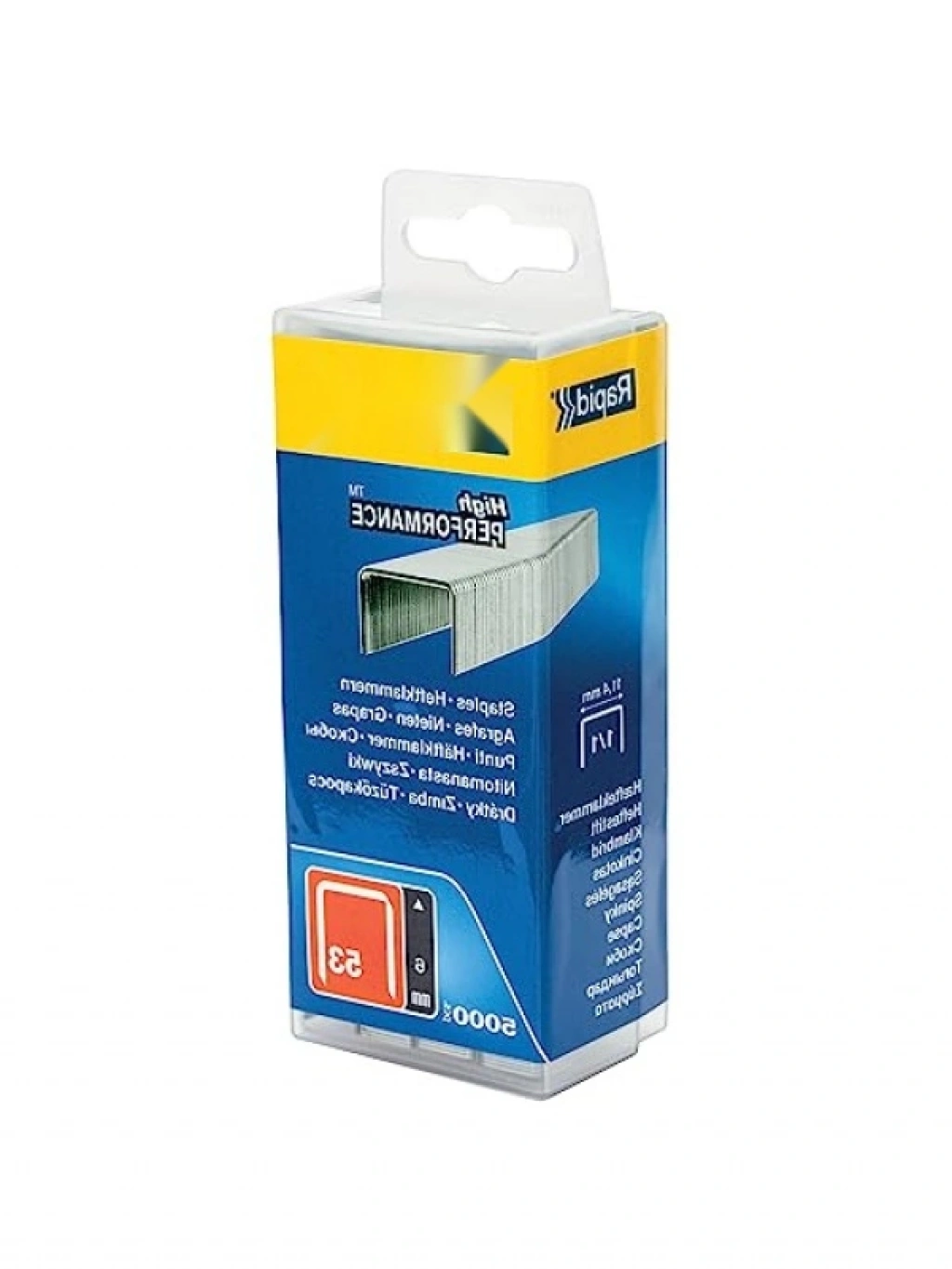 Bu Tip 53 zımba teli, 6 mm uzunluğunda ve 5.000 adetlik plastik kutuda sunulmaktadır. Yüksek kaliteli galvanize çelikten üretilmiştir ve optimum çekme gücü için hassas kesimlidir. Tekstil, kumaş, deri ve diğer malzemelerin sabitlenmesi için idealdir. Neredeyse görünmez yapısıyla, dokuların üzerindeki etkisi minimum düzeydedir. Korozyona dayanıklıdır ve hem iç hem de dış mekan kullanımı için uygundur.