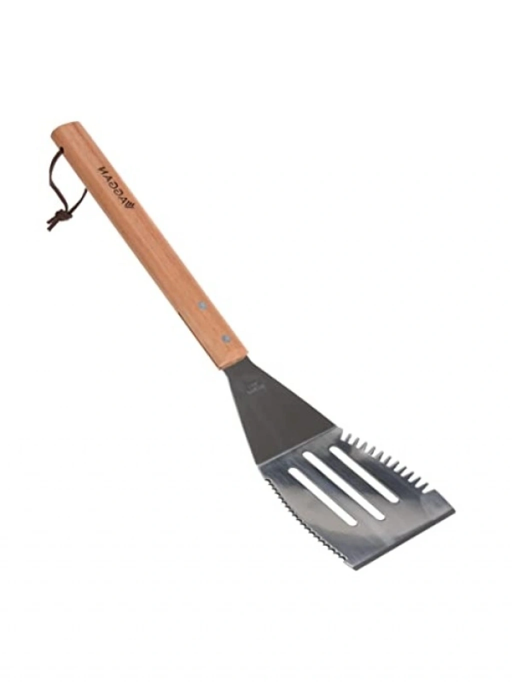 Açık hava etkinlikleri için tasarlanmış tırtıklı spatula, yüksek kaliteli paslanmaz çelikten üretilmiştir. 41 cm uzunluğu ile pratik bir kullanım sunar ve barbekü yaparken etlerinizin mükemmel pişmesini sağlar. Suya ve hava koşullarına dayanıklıdır, böylece her türlü açık hava aktivitesinde rahatlıkla kullanılabilir. Çok amaçlı kullanımı ile mutfak araçlarınız arasında yer almalıdır.