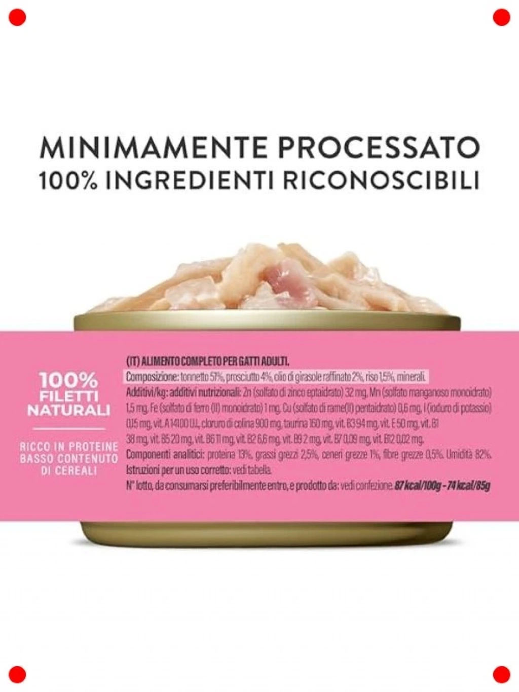 Yetişkin kediler için özel olarak hazırlanmış bu lezzetli konserve mama, ton balığı ve jambonun mükemmel birleşimini sunar. Kedinizin damak zevkine hitap eden bu zengin içerik, öğünlerini daha keyifli hale getirir. Yüksek kaliteli proteinler kas gelişimini desteklerken, yaş mama formatı kedinizin günlük su ihtiyacının karşılanmasına yardımcı olur. 85 gramlık pratik porsiyon, her öğünde taze servis imkanı sunarak israfı önler. Ana öğünlere ek olarak lezzetli bir ara öğün veya ödül olarak da kullanılabilir. Kedinizin sağlıklı ve mutlu bir yaşam sürmesine katkıda bulunan bu özel lezzet, onu mest edecek.