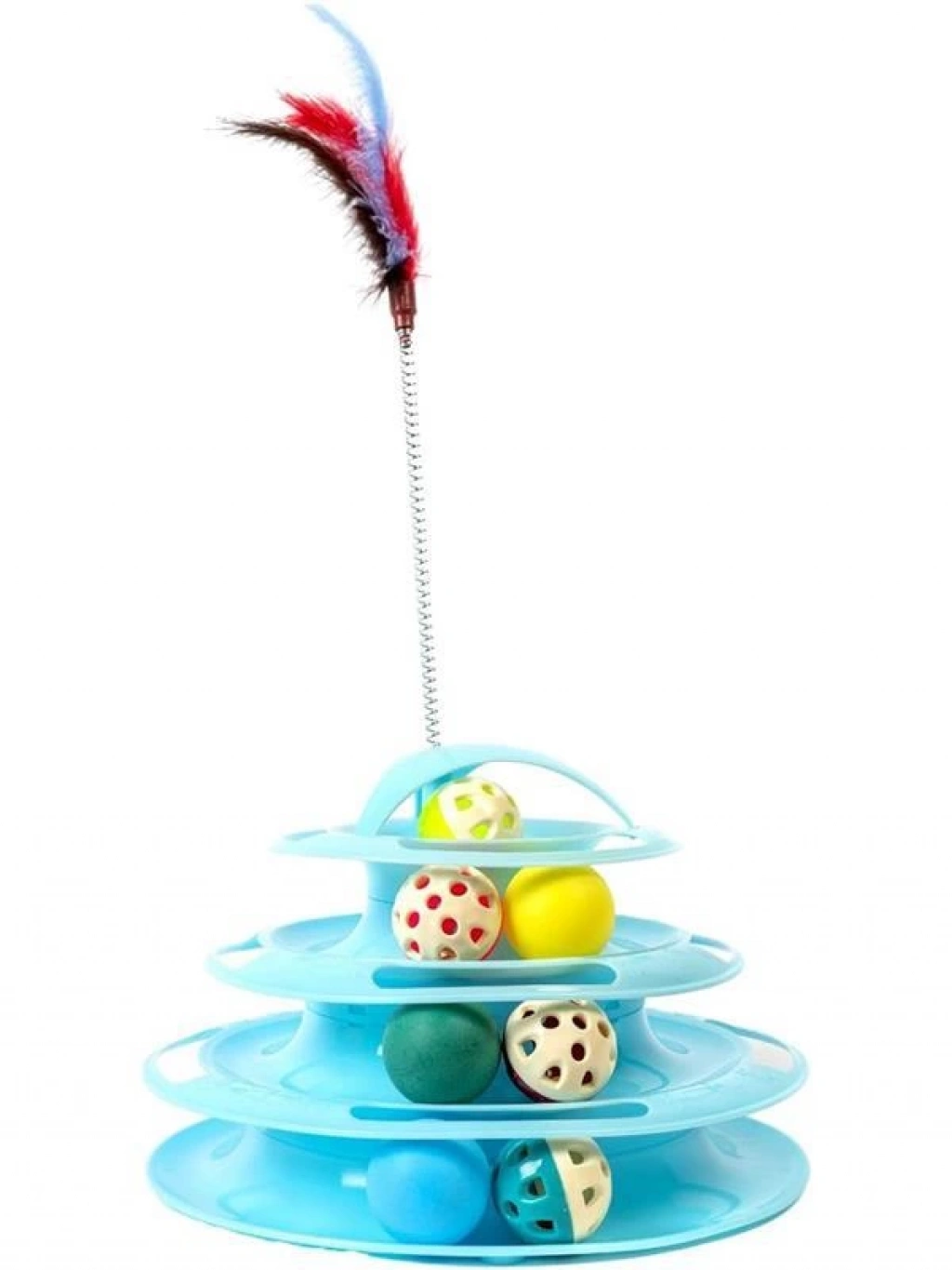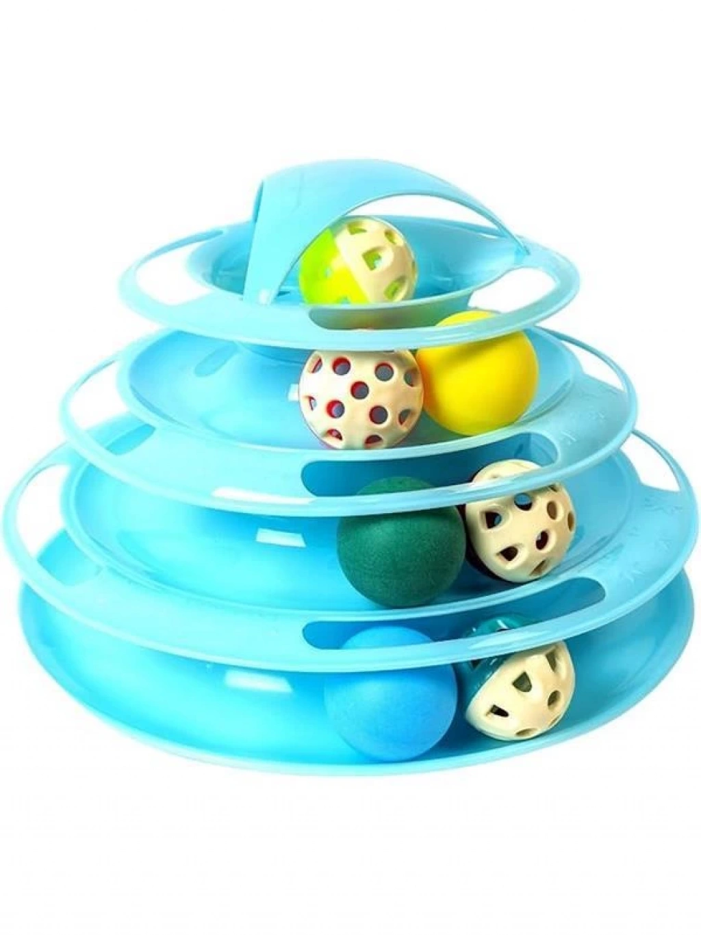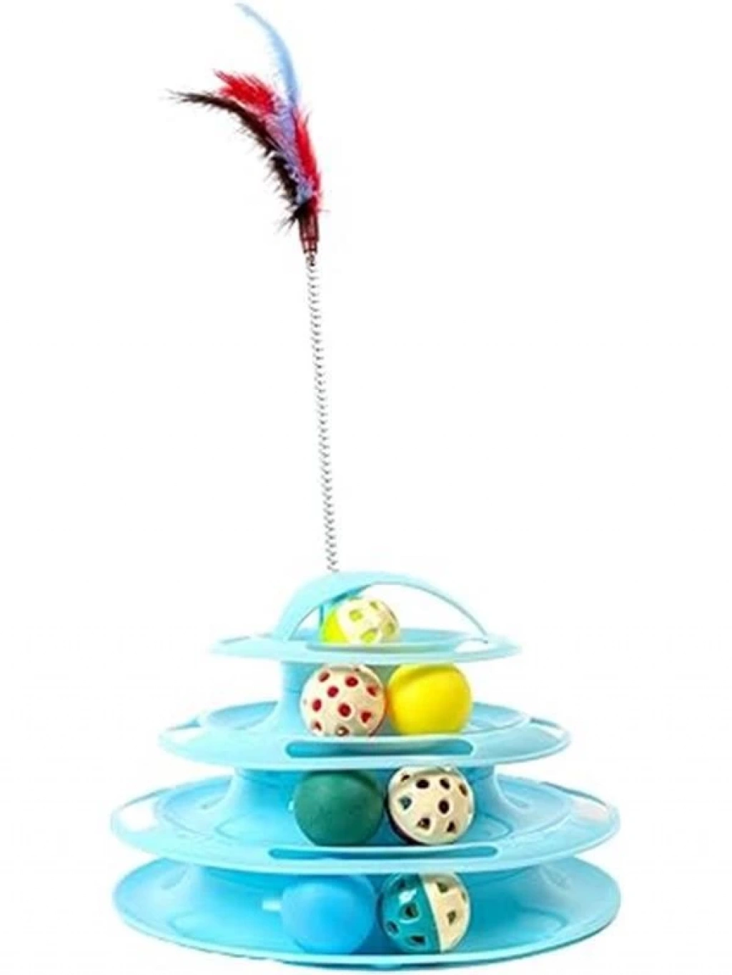 Tower Of Tracks 4 Katlı 7 Toplu Ve Tüylü Yuvarlak Kedi Oyuncağı 24 X 13 Cm Turkuaz