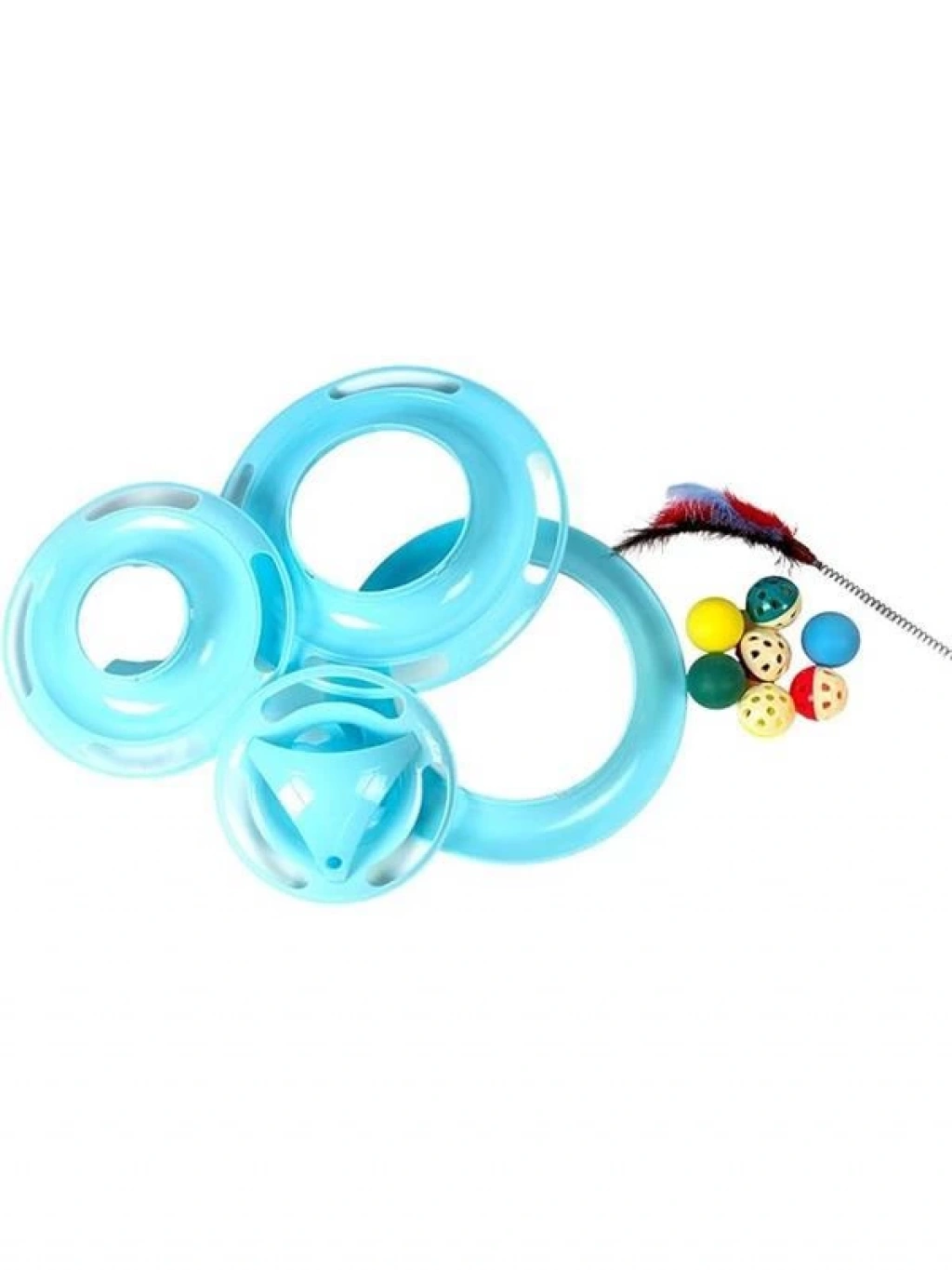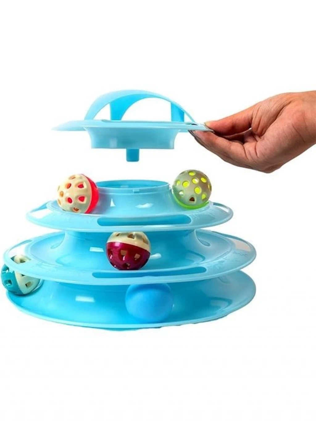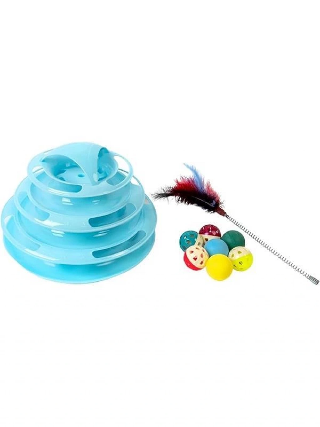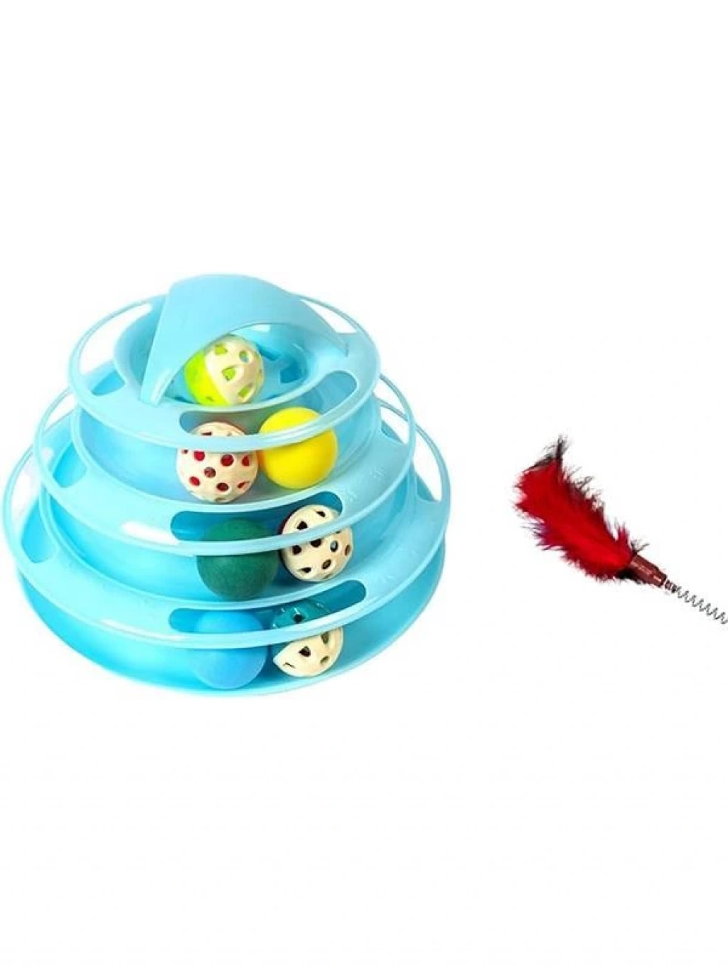 Tower Of Tracks 4 Katlı 7 Toplu Ve Tüylü Yuvarlak Kedi Oyuncağı 24 X 13 Cm Turkuaz