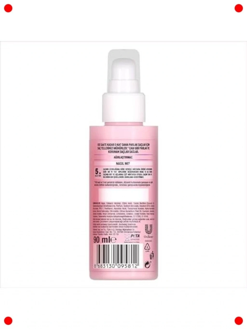 Saçlarınıza anında göz alıcı bir parlaklık ve ipeksi bir dokunuş kazandıran bu özel serum ile saçlarınızın güzelliğini ortaya çıkarın. Özel formülü, saç tellerini yoğun bir şekilde besler ve nemlendirir, böylece mat ve cansız görünen saçlara canlılık verir. Hafif yapısı sayesinde saçları ağırlaştırmaz veya yağlı bir his bırakmaz, doğal bir parlaklık sunar. Elektriklenmeyi ve kabarmayı kontrol altına alırken, saçlarınızın daha kolay taranmasına yardımcı olur. Aynı zamanda saç tellerini çevresel faktörlere karşı korur. 90 ml'lik pratik boyutuyla her zaman yanınızda taşıyabilir, saçlarınıza ihtiyaç duyduğu ışıltıyı her an verebilirsiniz.