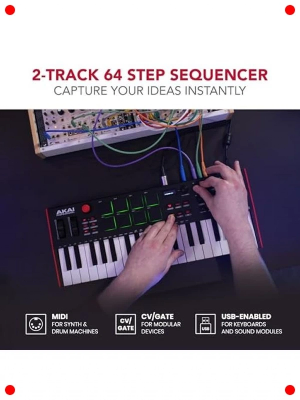 Dijital müzik prodüksiyonunuzu bir üst seviyeye taşımak için tasarlanmış bu kompakt USB MIDI kontrol klavyesi ile yaratıcılığınızı serbest bırakın. 37 adet mini tuş, 8 adet performans pedi ve dahili sıralayıcı (sequencer) ile eksiksiz bir prodüksiyon deneyimi sunar. MIDI, CV ve Gate giriş/çıkış seçenekleri sayesinde çeşitli analog ve dijital ekipmanlarla kolayca entegre edilebilir. Kapsamlı müzik prodüksiyon yazılımı paketiyle birlikte gelir, böylece kutudan çıktığı anda müzik yapmaya başlayabilirsiniz. Hem stüdyo hem de canlı performanslar için ideal bir araçtır, sınırsız müzikal ifade sunar.