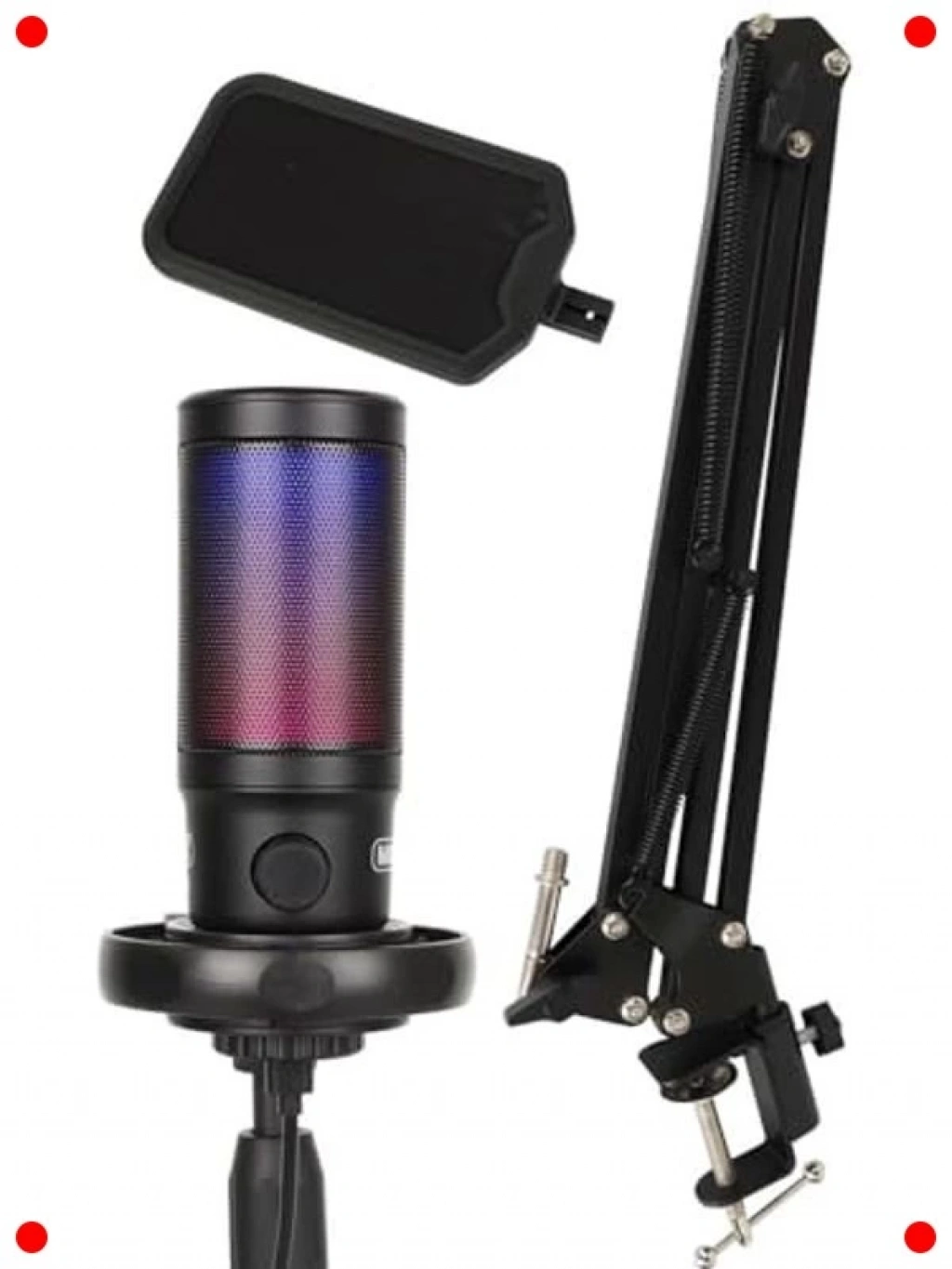 Oyun deneyiminizi ve yayın kalitenizi bir üst seviyeye taşıyacak bu USB kondenser mikrofon seti ile sesinizi dünyaya duyurun. Yüksek ses alma hassasiyetine sahip kondenser yapısı sayesinde net ve stüdyo kalitesinde ses kayıtları yapmanızı sağlar. Tak çalıştır USB bağlantısı ile kolay kurulum sunar, ek sürücüye ihtiyaç duymaz. Entegre RGB aydınlatma, oyun veya yayın ortamınıza dinamik ve şık bir atmosfer katar. Oyun içi iletişim, canlı yayınlar (Twitch, YouTube), podcast kaydı, sesli sohbetler (Discord) ve profesyonel vokal performansları için idealdir. Her detayı yakalayan bu mikrofonla fark yaratın.