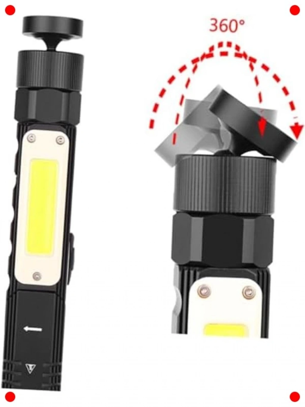 Kamp, tamirat, acil durumlar ve günlük kullanım için tasarlanmış bu çok yönlü LED el feneri, üstün aydınlatma ve pratik özellikleriyle öne çıkar. USB ile kolayca şarj edilebilir olması sayesinde her an kullanıma hazırdır. 800 lümen gücündeki ana ışığı ve geniş alan aydınlatması sunan COB ışığı ile farklı ihtiyaçlara cevap verir. 360° dönebilen mıknatıslı tabanı ve 90° döner başlığı, eller serbest kullanım imkanı sunar. Ayrıca, kırmızı flaşör özelliği acil durumlarda dikkat çekmenizi sağlar. Kalem klipsi sayesinde kolayca taşınabilir ve metal yapısıyla dayanıklılık sunar.