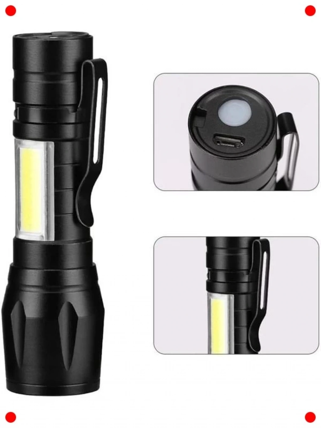 Cebinizde taşıyabileceğiniz bu USB şarjlı mini LED el feneri ile karanlığı aydınlatın. Ultra güçlü LED teknolojisi sayesinde etkileyici bir ışık performansı sunar ve çevrenizi kolayca aydınlatır. Düşük, yüksek ve flaş olmak üzere 3 farklı ışık modu bulunur, böylece ihtiyacınıza göre aydınlatma şiddetini ayarlayabilirsiniz. Dayanıklı metal kasası, düşmelere ve darbelere karşı ekstra koruma sağlar, bu da onu dış mekan kullanımı için ideal kılar. Entegre klipsi sayesinde kolayca cebinize, kemerinize veya çantanıza takabilirsiniz. USB portu üzerinden pratik bir şekilde şarj edilebilir, böylece pil değişimine gerek kalmaz. Acil durumlar, kamp, yürüyüş veya günlük kullanım için vazgeçilmez bir aydınlatma aracıdır.