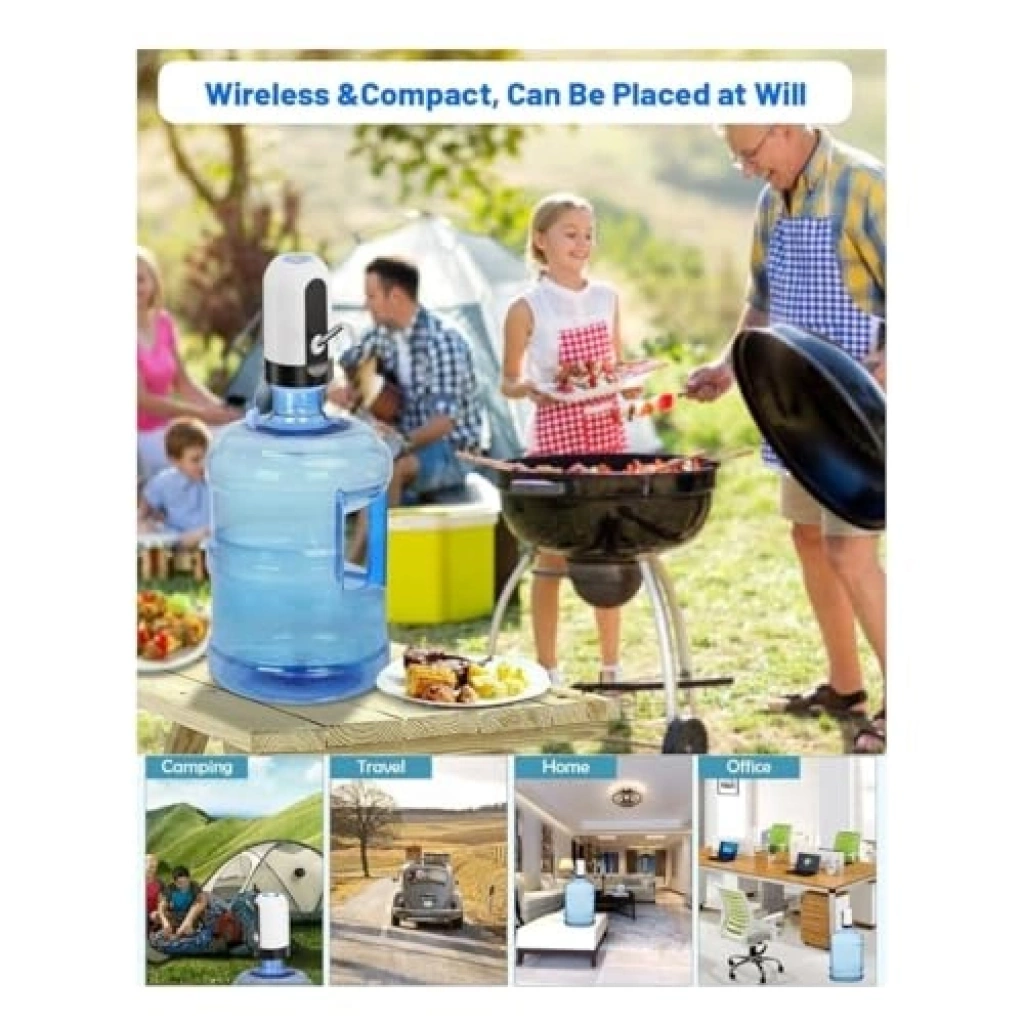USB ile şarj edilebilen bu su pompası, taşınabilirliği sayesinde priz ihtiyacını ortadan kaldırır. 304 paslanmaz çelik musluk ucu ve gıda sınıfı silikon hortum kullanarak hijyenik bir su akışı sunar. 1200 mAh pil kapasitesi ile tek bir şarjla 4-6 damacana su doldurabilme özelliği vardır. Hem evde hem de dışarıda rahatlıkla kullanabilirsiniz.